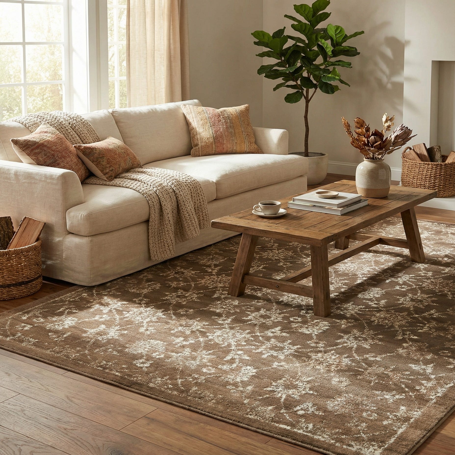 Primary color is Taupe. Colors in this rug include: Taupe, Beige.