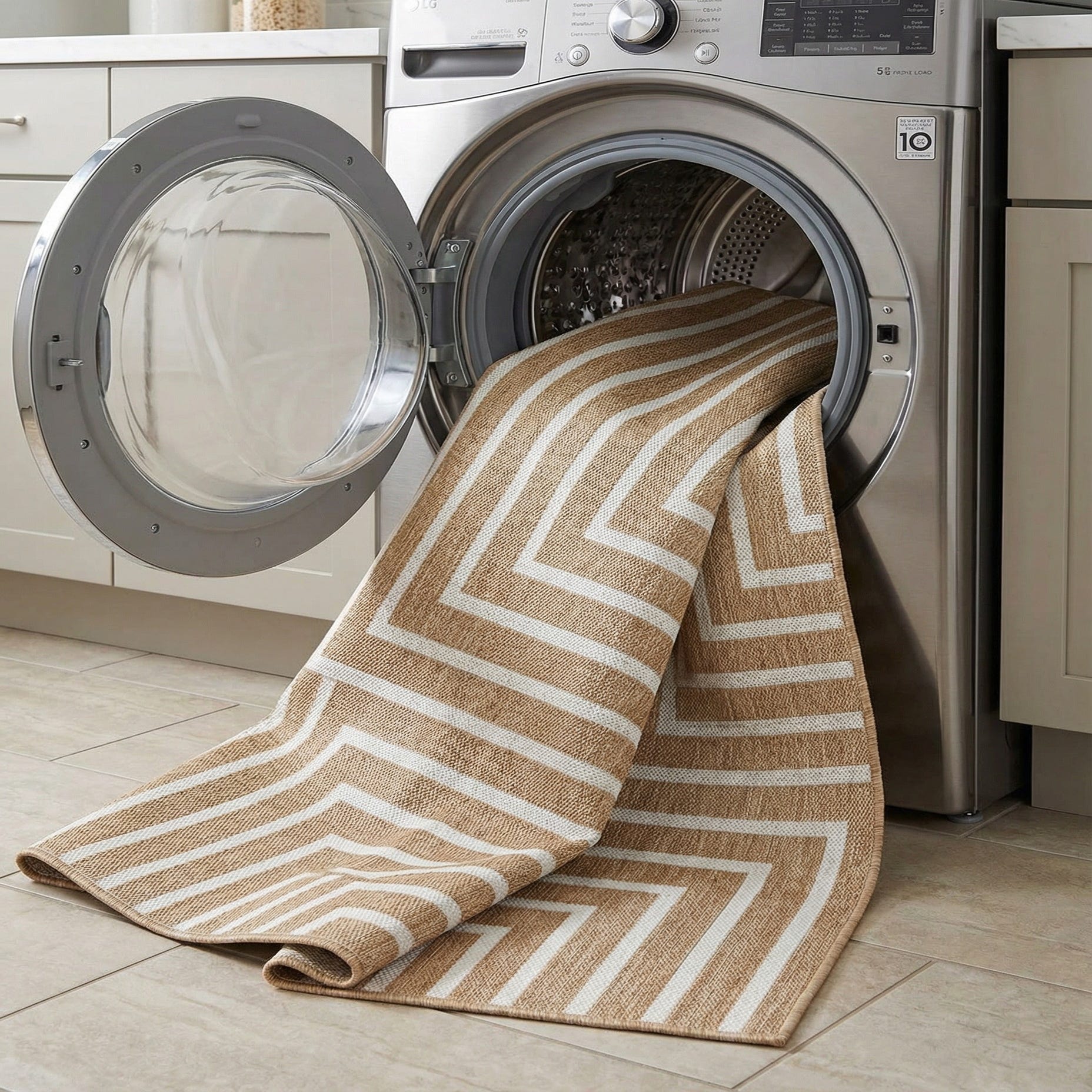 The neutral taupe and ivory palette pairs easily with natural woods, rattan, woven linens and matte metal finishes, making this rug a versatile anchor for a covered patio, sunroom, or modern living and dining areas. Use it to define a seating group, ground a dining table, or add architectural interest to a contemporary entry—its structured pattern complements minimalist, coastal, and transitional schemes alike.