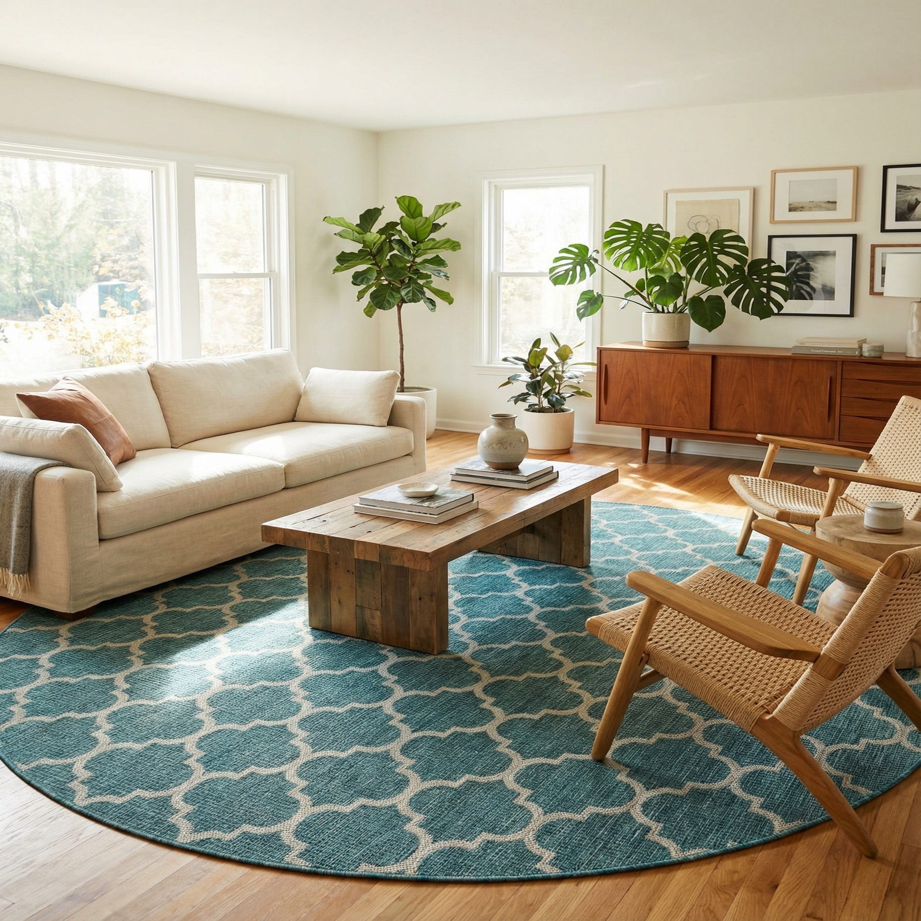 12' x 12' Washable Lattice Indoor / Outdoor Round Rug