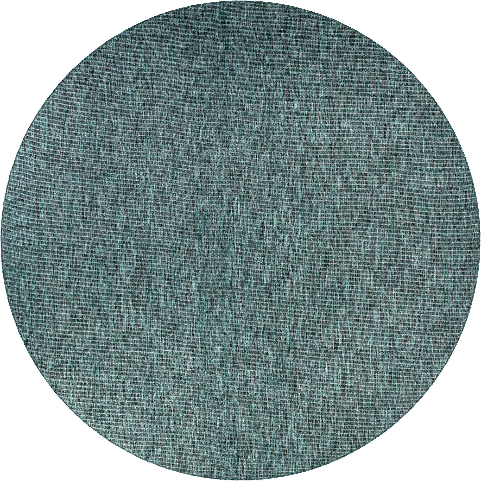This Outdoor Solid Collection rug showcases a versatile and durable design, woven from 100% polypropylene fibers. The rug features a sophisticated teal background with subtle ivory accenting that presents a refreshing color palette. Its flatweave construction delivers a smooth, low-profile texture that complements various outdoor settings.