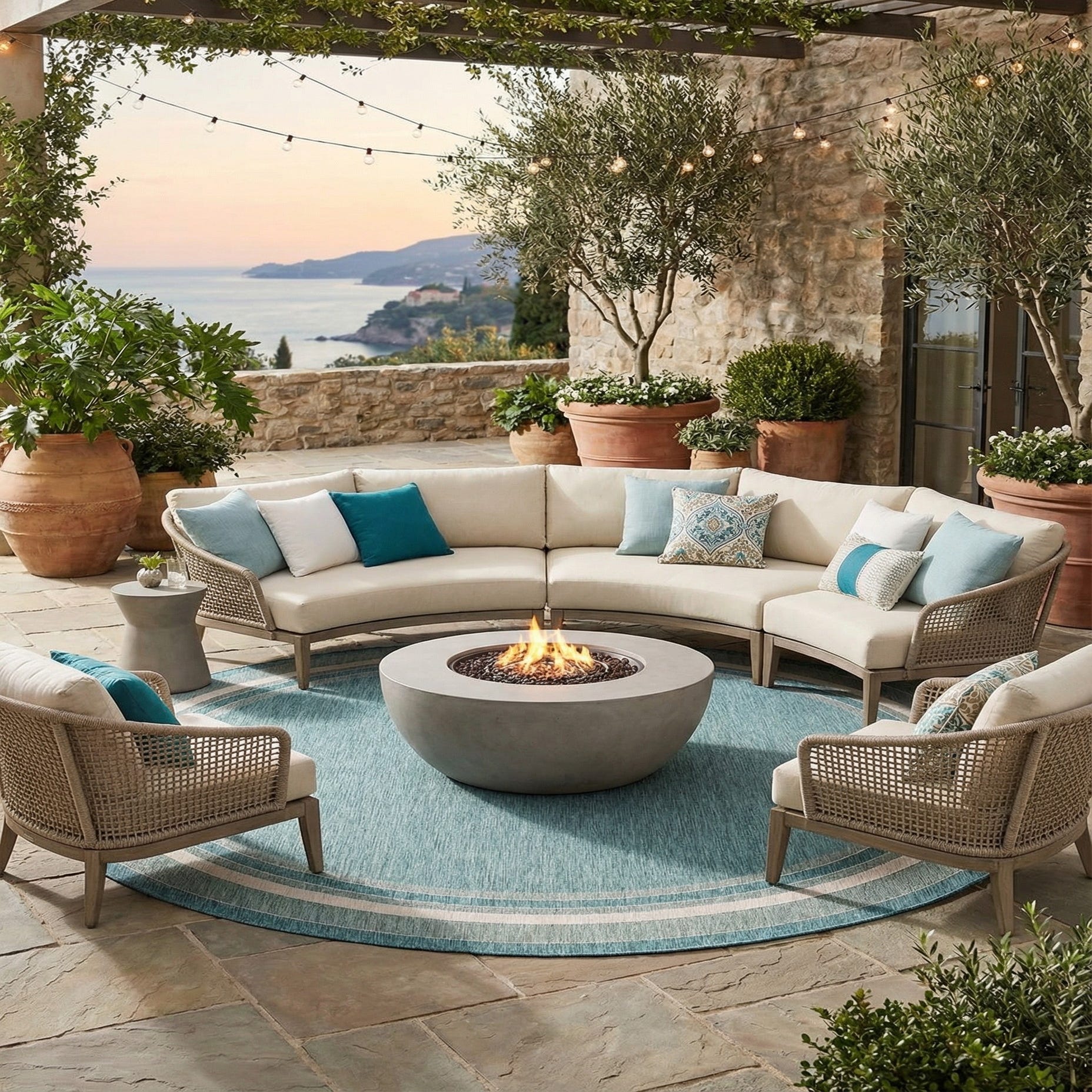 Consider this rug for use in outdoor living spaces, such as patios and decks, where it will add a touch of refined color to your alfresco entertaining areas. Additionally, its understated elegance would suit any contemporary or coastal-themed indoor room, providing a cool and fresh aesthetic. The circular shape of the rug could also lend itself well to creating a focal point within a larger space or under round dining tables, enhancing the cohesion of your living environment.