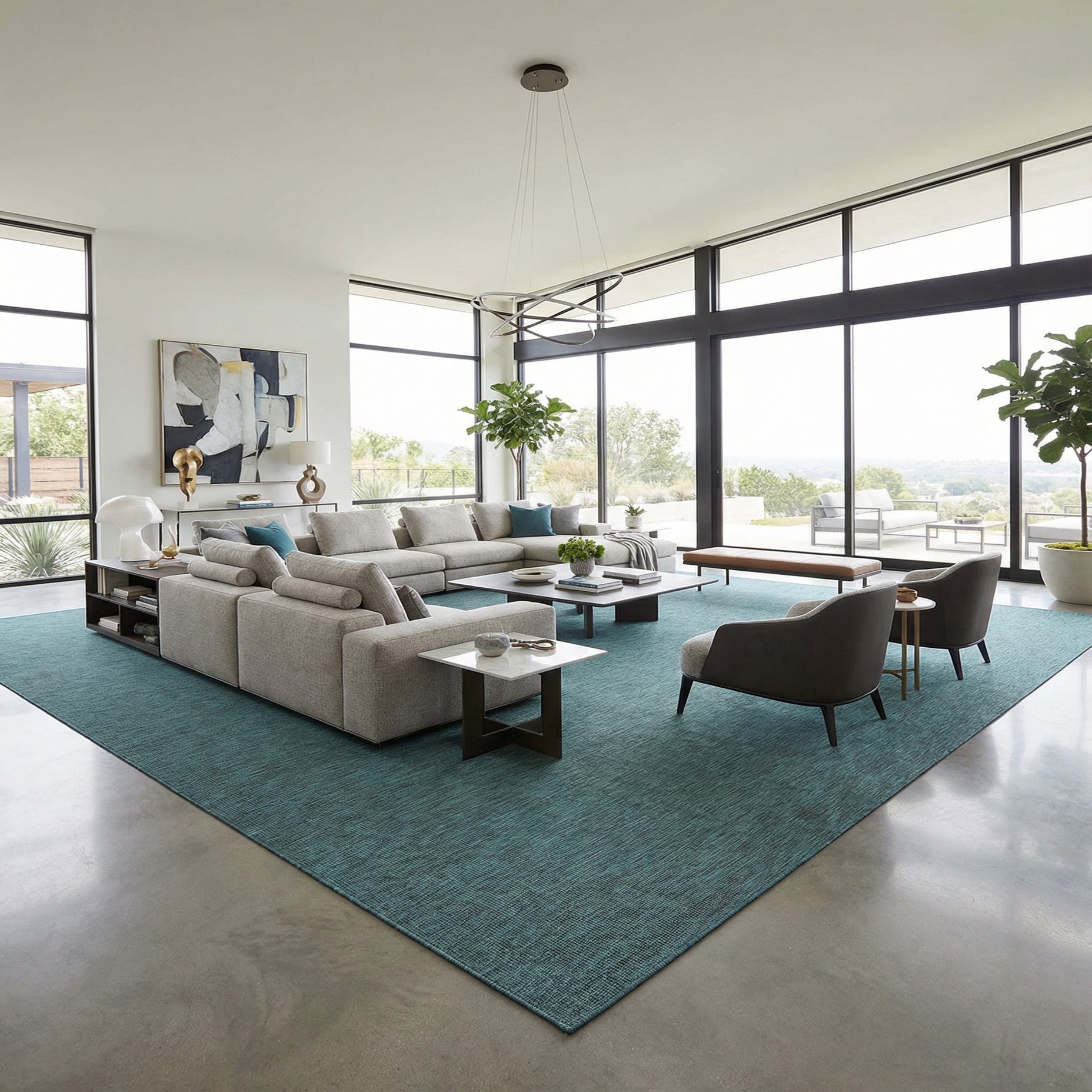 Given the rug's pet-friendly and shed-free properties, it is an ideal selection for homes with pets. It can seamlessly integrate into a variety of outdoor settings, such as patios, decks, and poolside areas, while also transitioning beautifully into indoor spaces like sunrooms, living rooms, and dens where a hard-wearing yet stylish floor covering is desired.