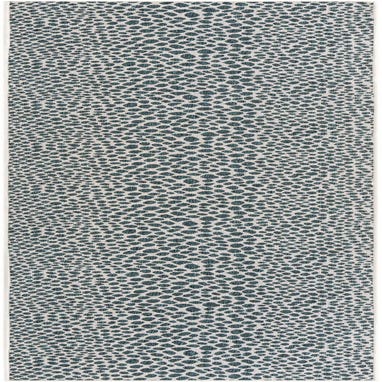 Primary color is Teal. Colors in this rug include: Teal, Ivory.