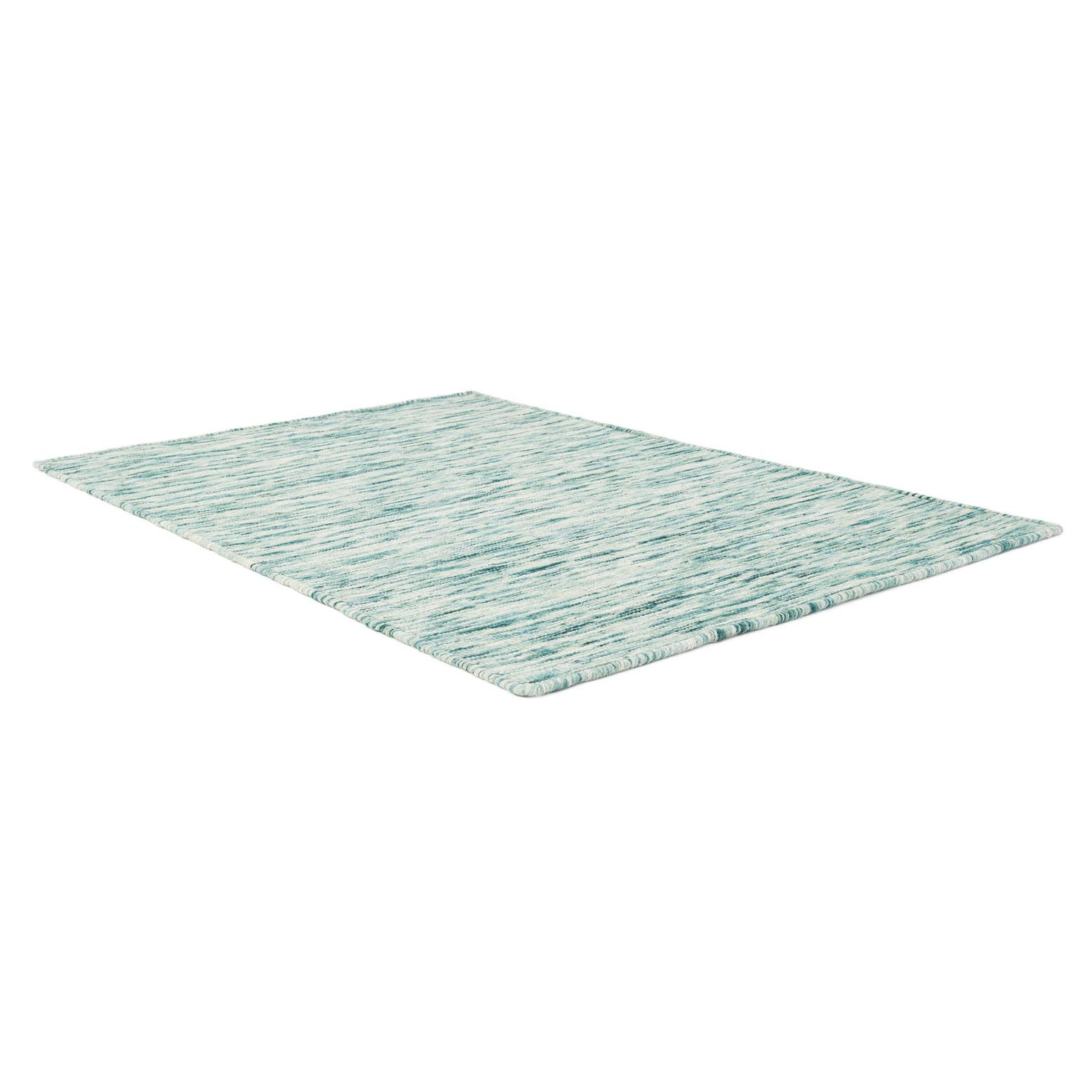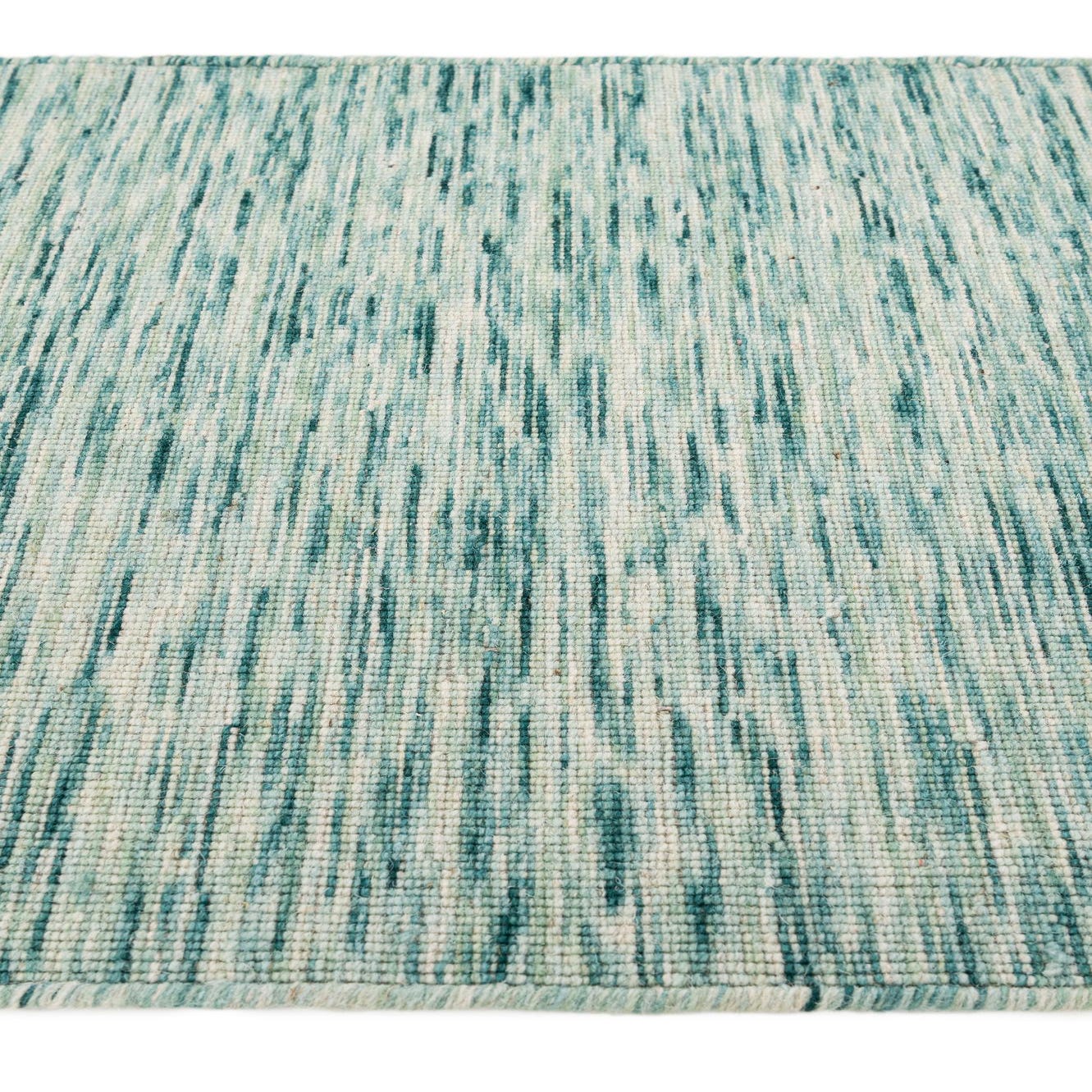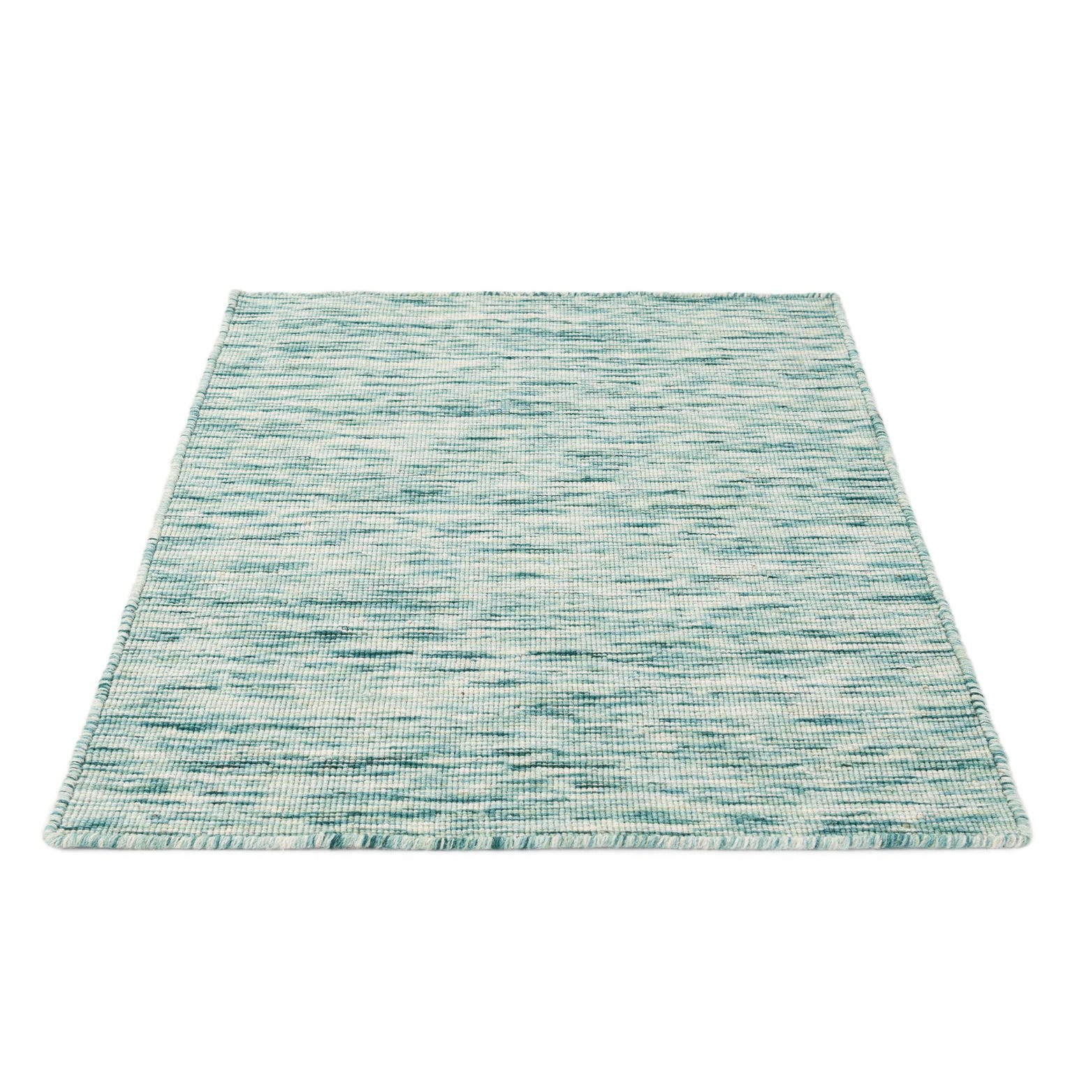Primary color is Teal. Colors in this rug include: Teal, Blue, Ivory.