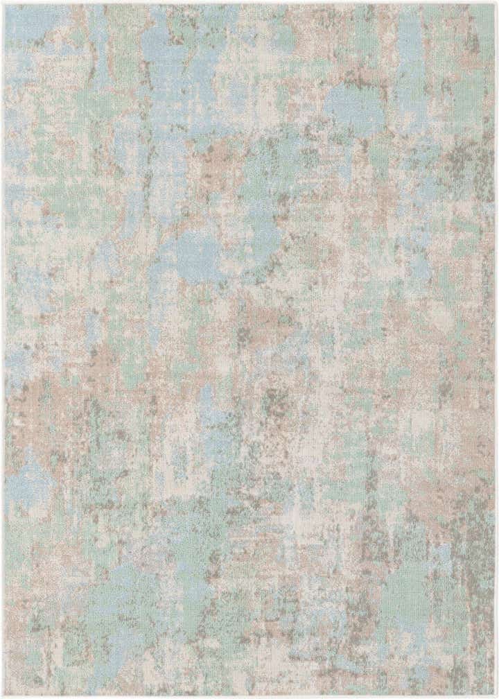 Primary color is Teal. Colors in this rug include: Teal, Beige, Gray, Light Blue, Ivory.