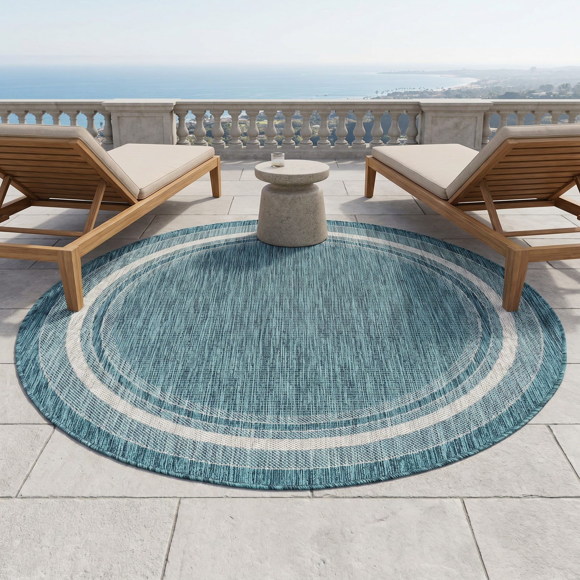 5' 3 x 5' 3 Easy-Clean Border Indoor / Outdoor Round Rug