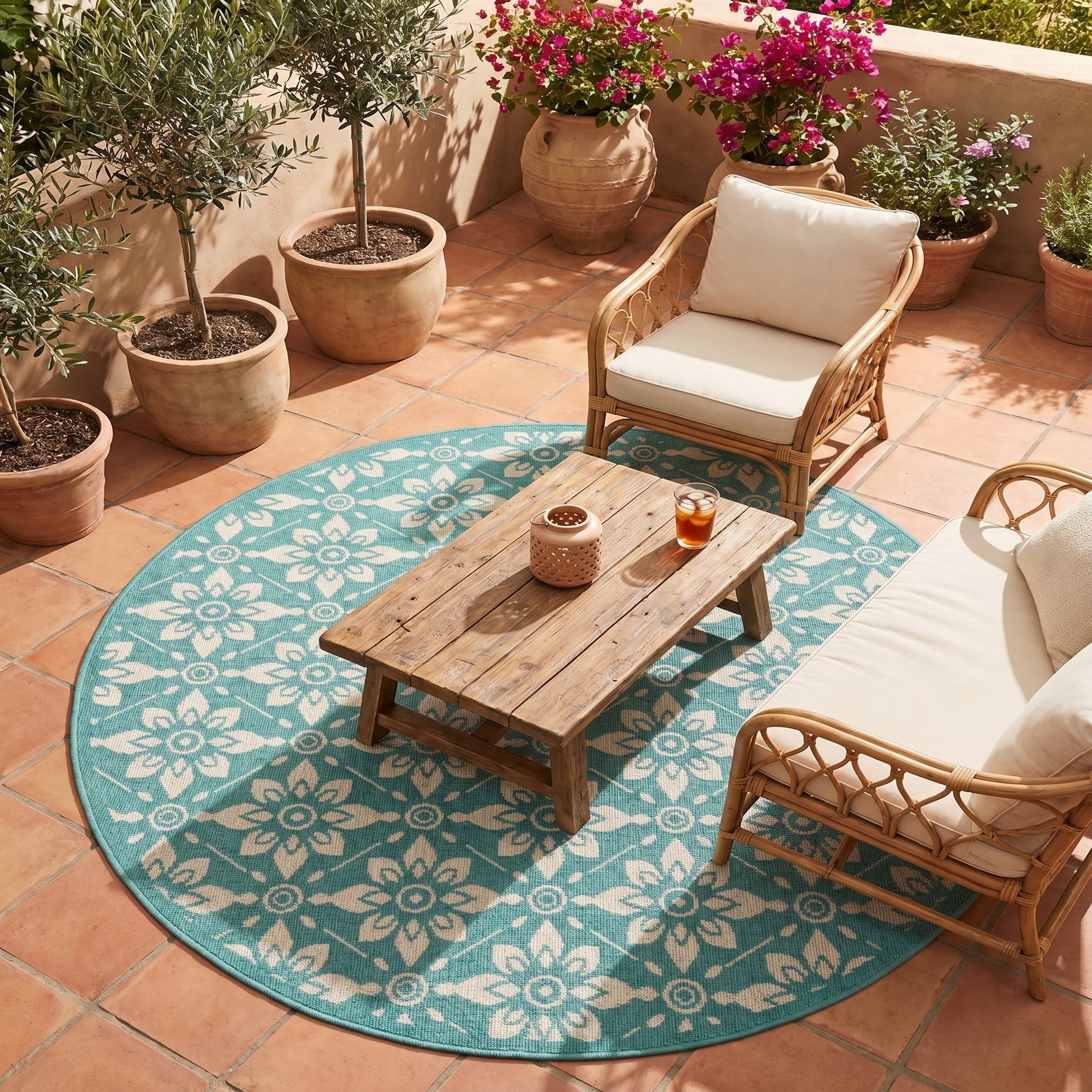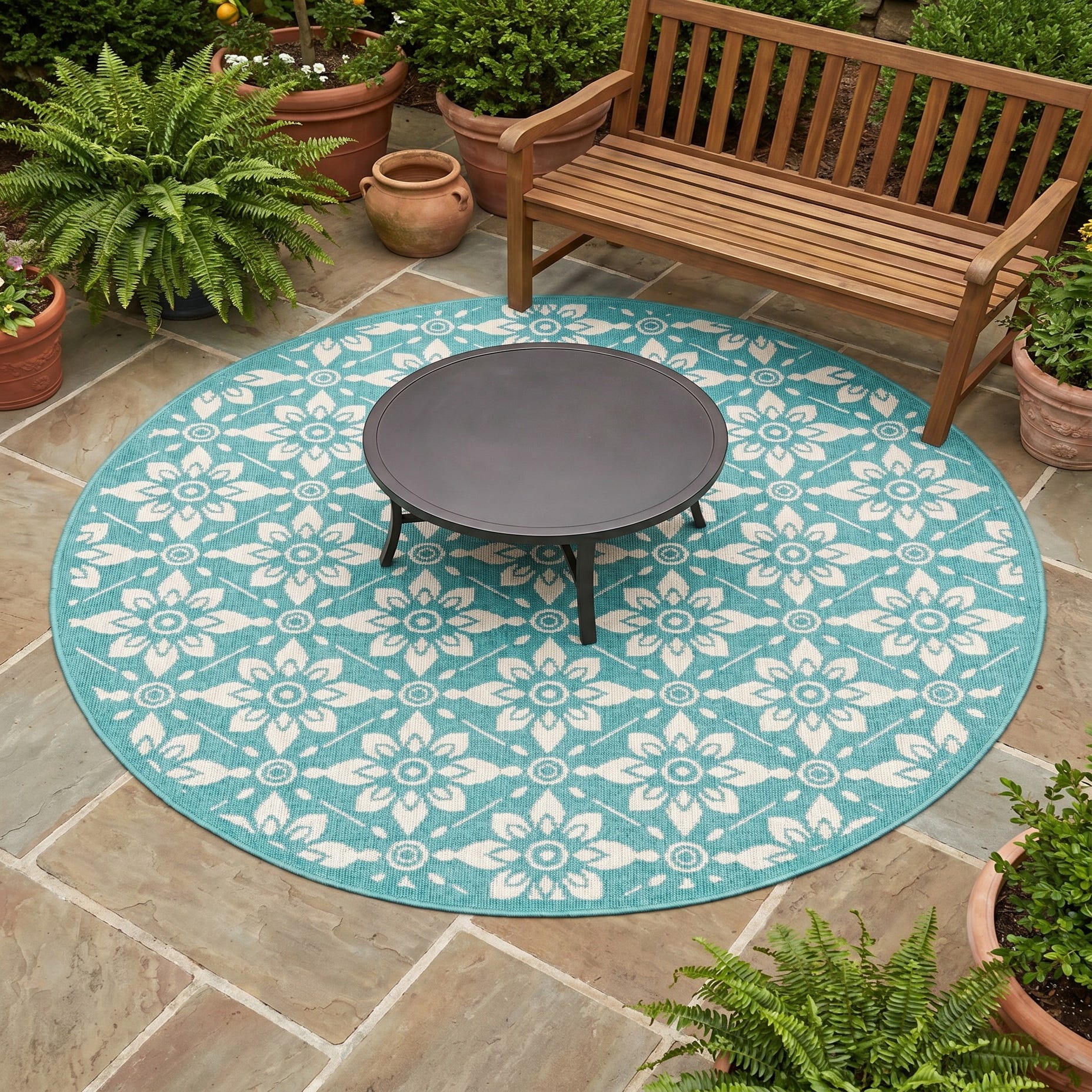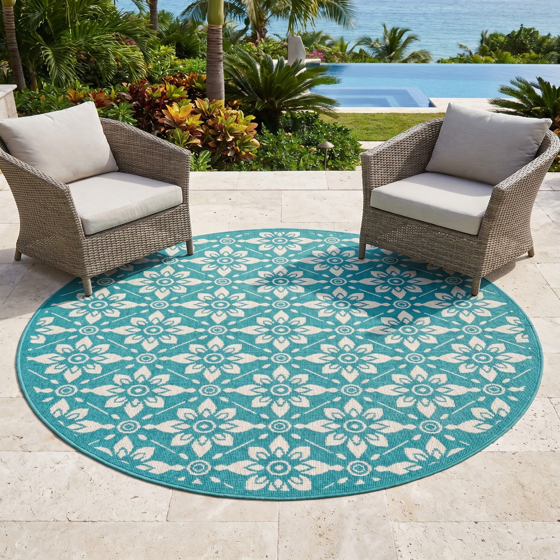 5' x 5' Easy-Clean Lattice Indoor / Outdoor Round Rug