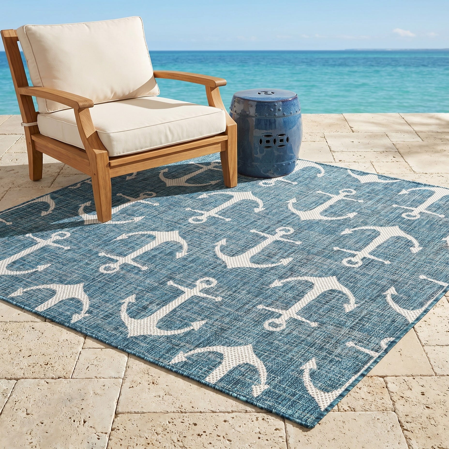 5' 3 x 5' 3 Easy-Clean Coastal Indoor / Outdoor Square Rug