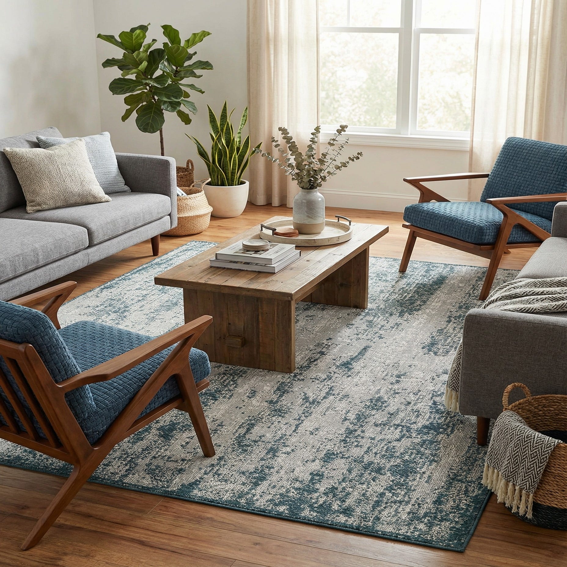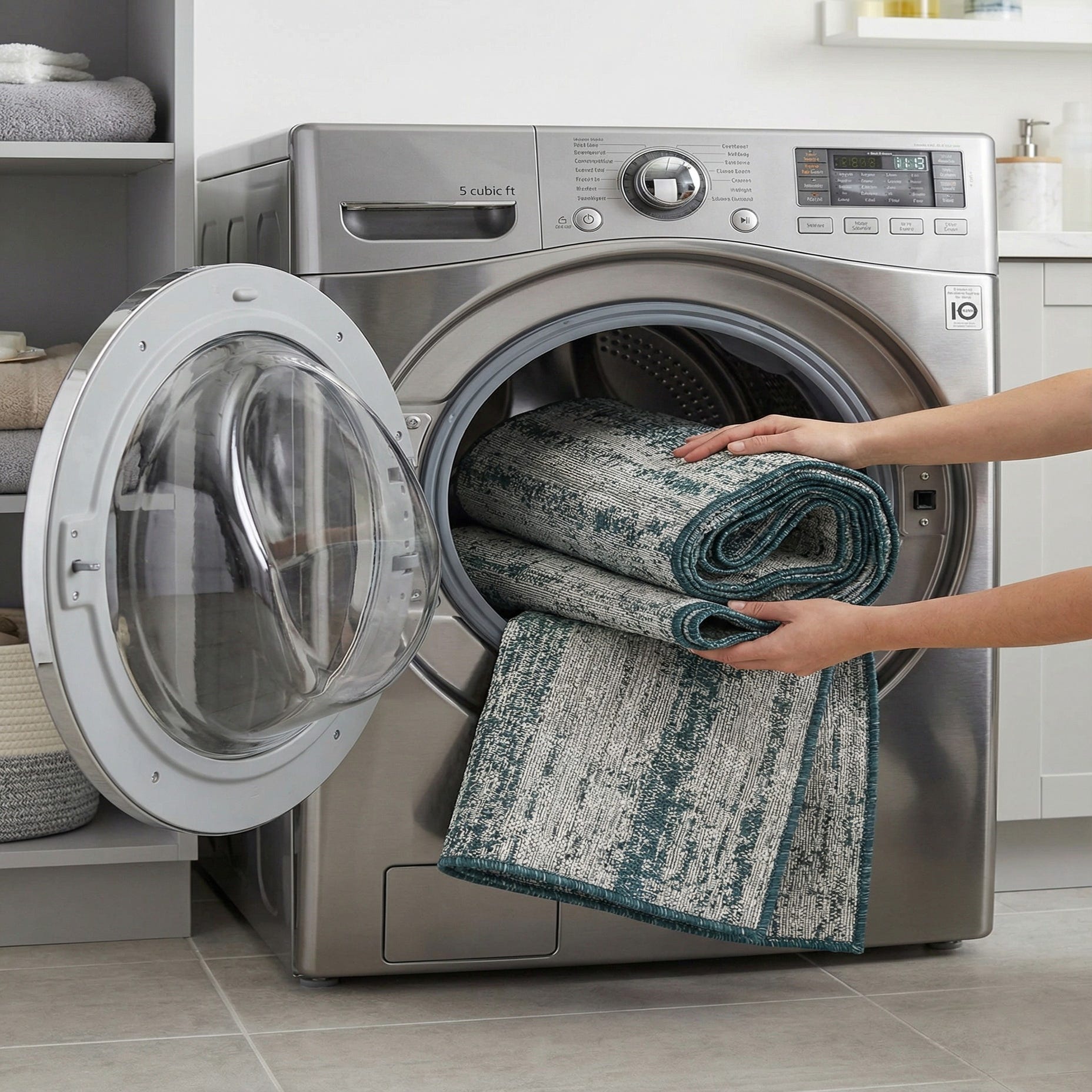 5' 3 x 5' 3 Washable Modern Indoor / Outdoor Square Rug