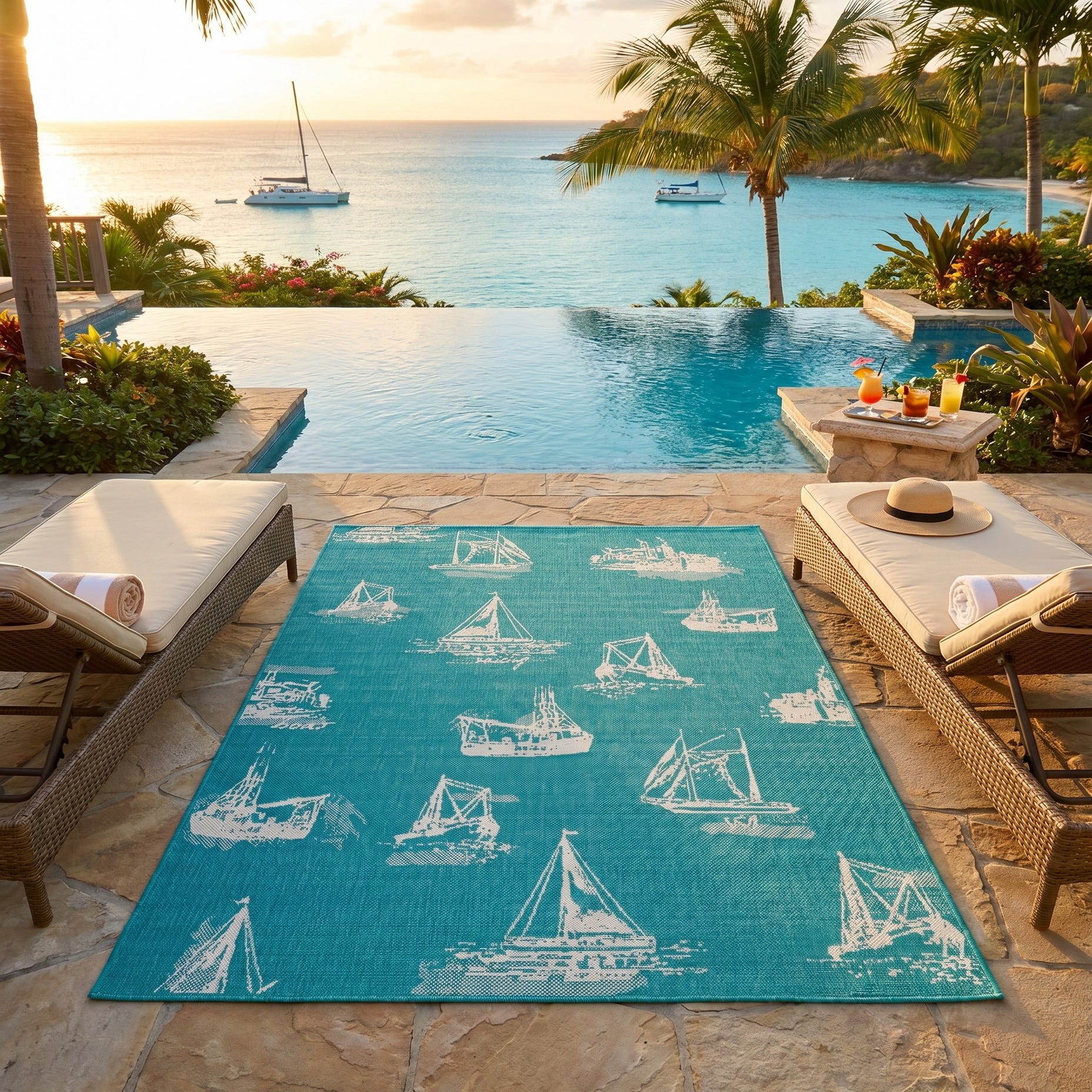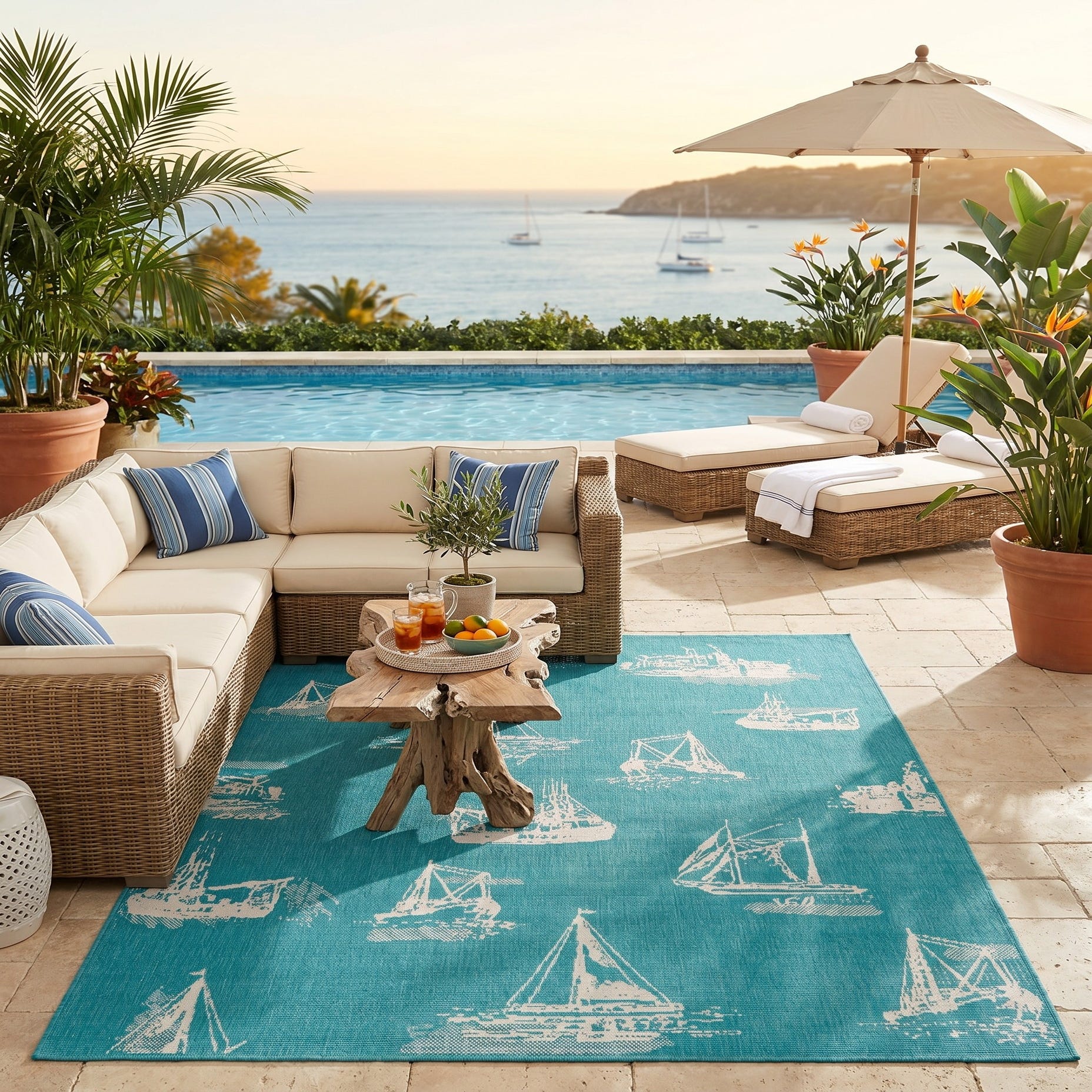 5' 3 x 8' Easy-Clean Coastal Indoor / Outdoor Rug