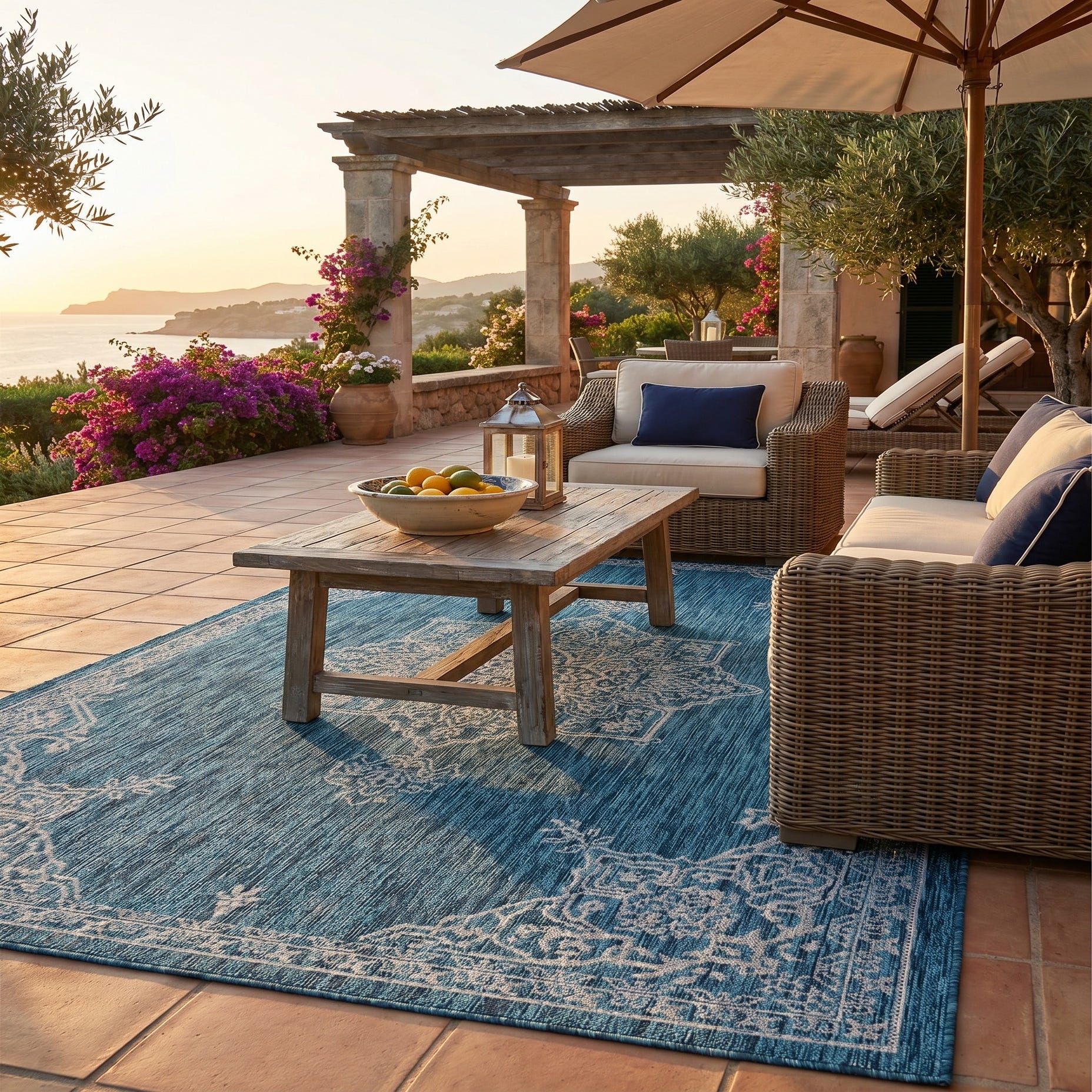 5' 3 x 8' Easy-Clean Traditional Indoor / Outdoor Rug