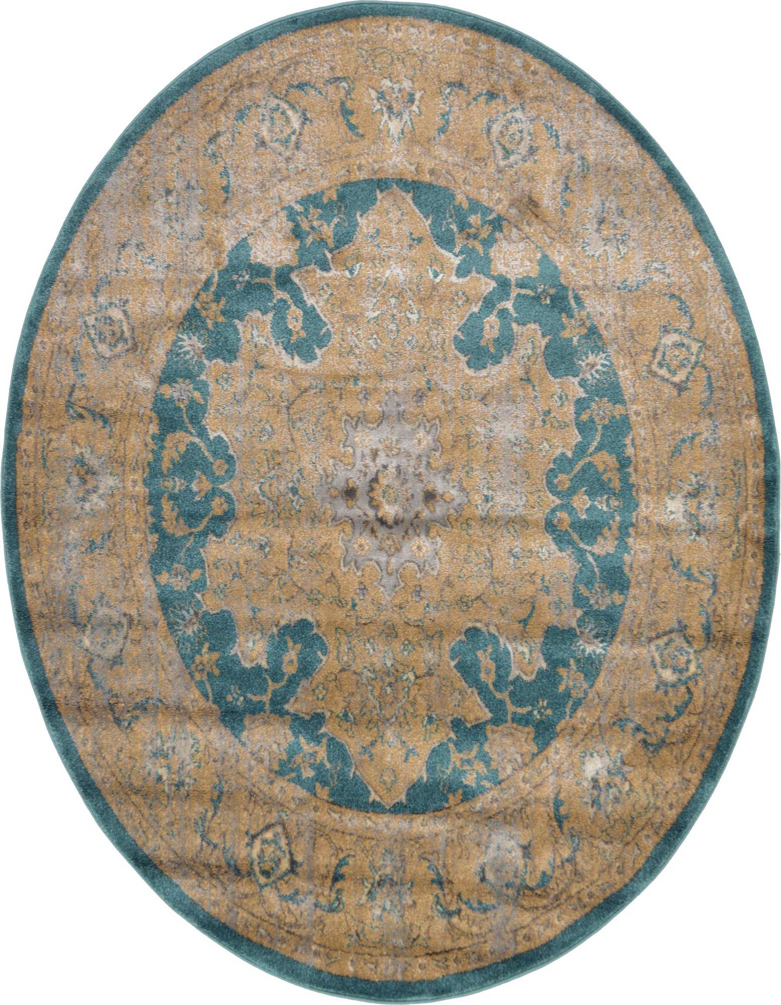 Primary color is Teal. Colors in this rug include: Teal, Blue, Gray, Light Brown.