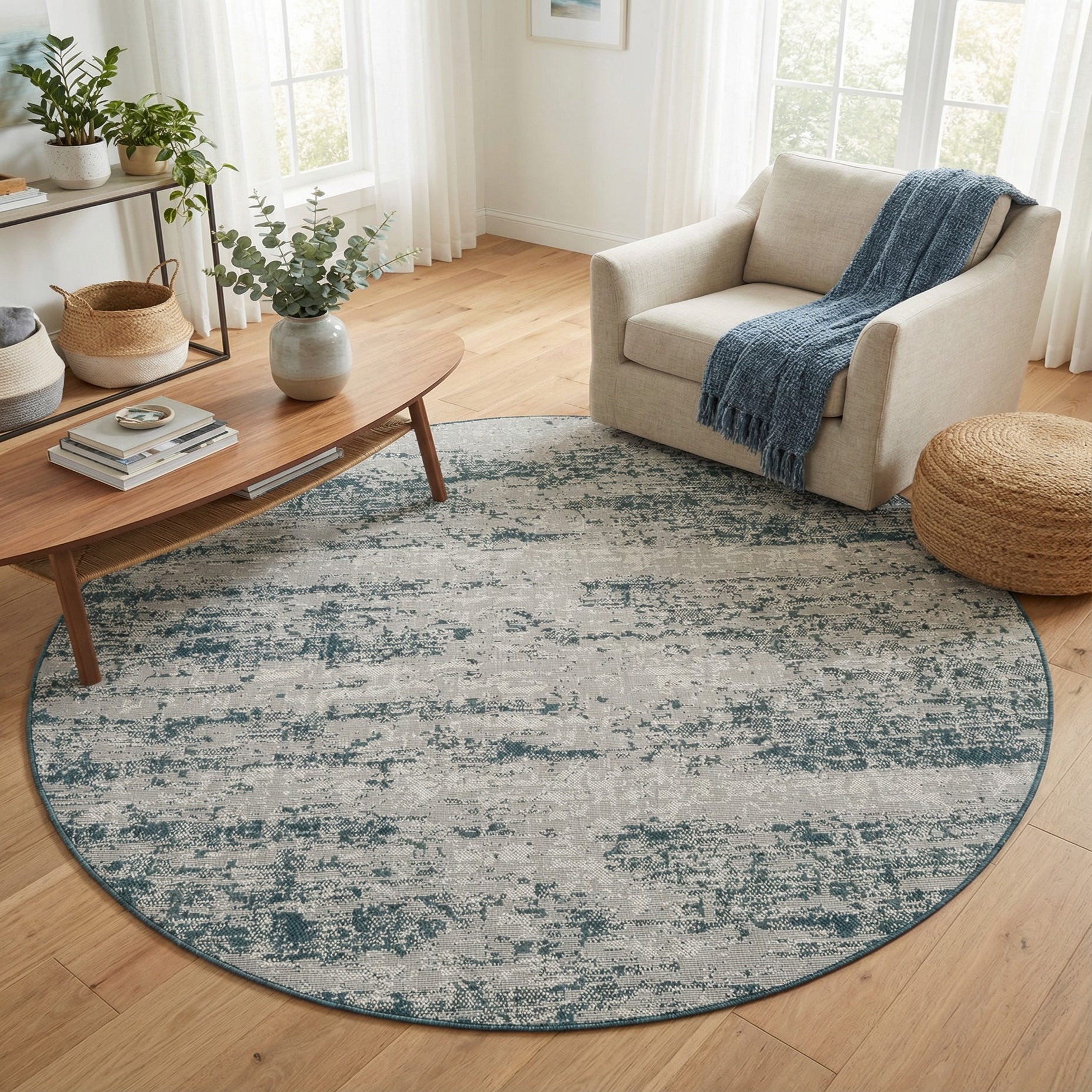 6' x 6' Washable Modern Indoor / Outdoor Round Rug