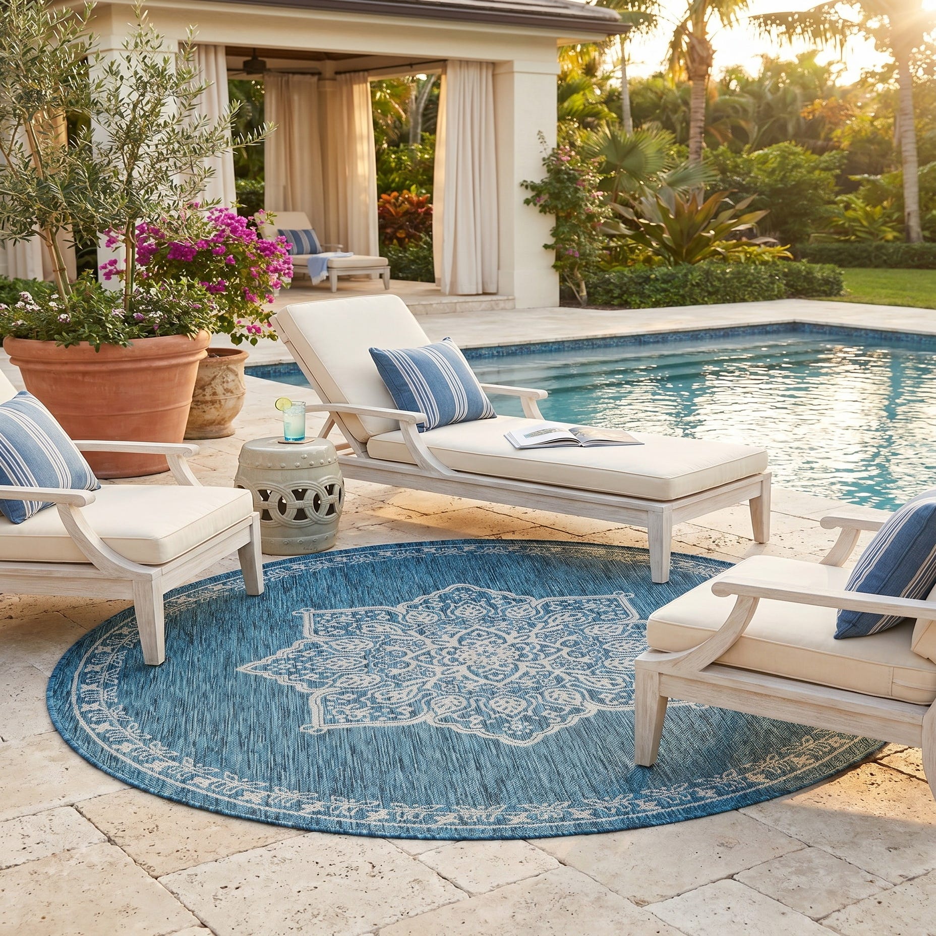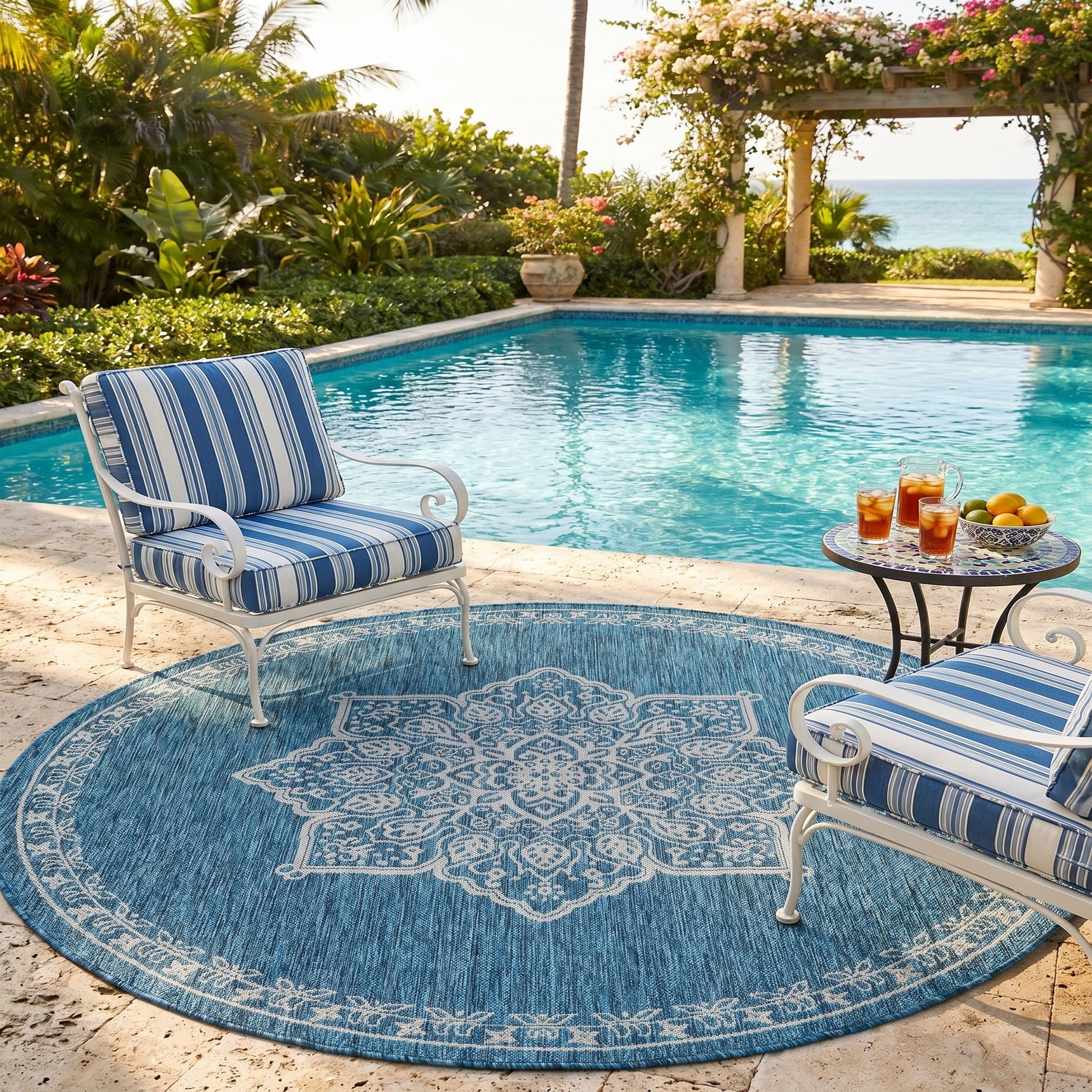 6' x 6' Easy-Clean Traditional Indoor / Outdoor Round Rug