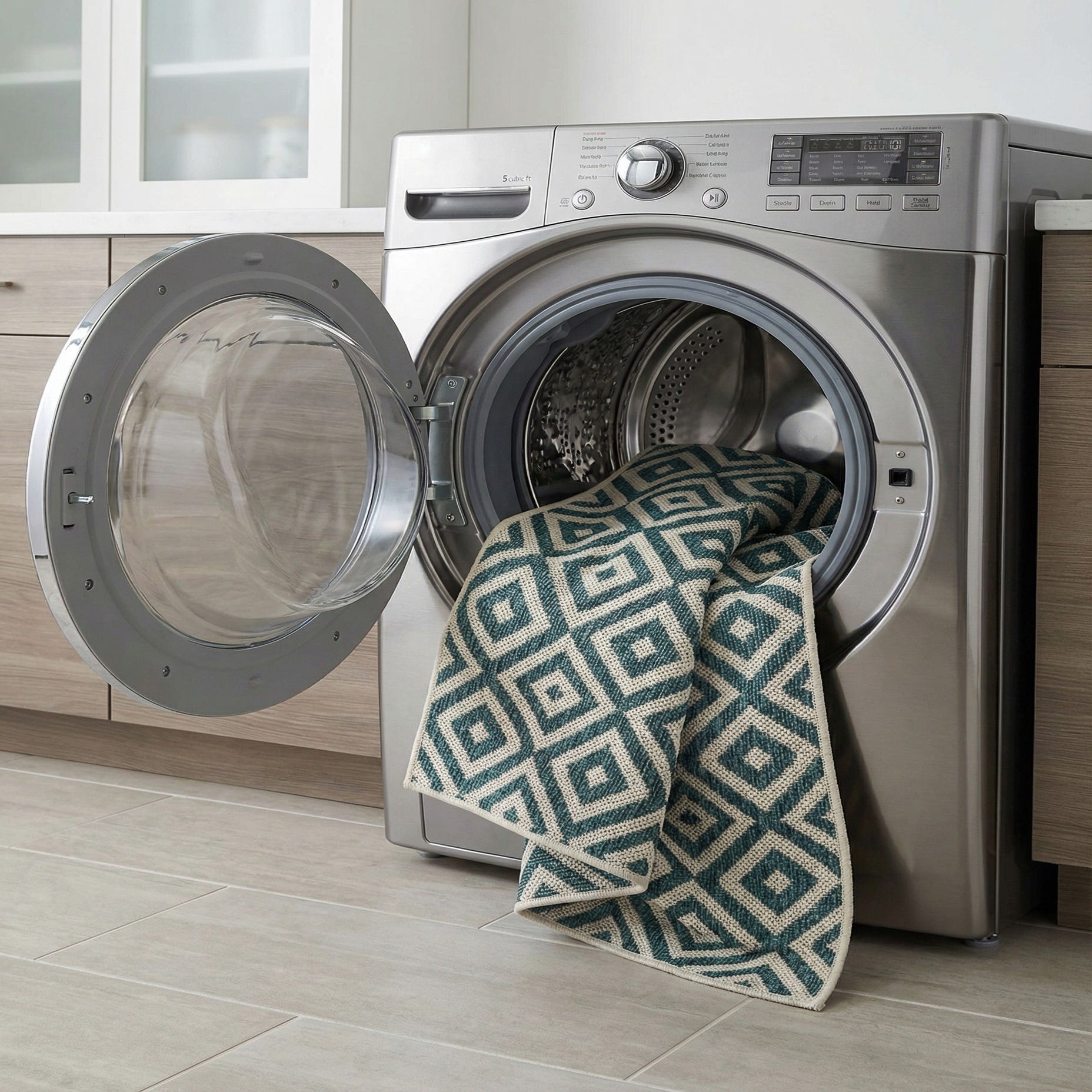 This runner works well in narrow, high-traffic zones where a bold pattern can make a statement without overwhelming the space: think entryways and hallways, a covered patio or porch, or along a kitchen galley. Pair it with light wood or white-painted furniture for a coastal or contemporary vibe, add woven textures and rattan for a relaxed outdoor-living look, or layer it against neutral rugs and clean-lined furnishings in a transitional layout to introduce color and pattern.