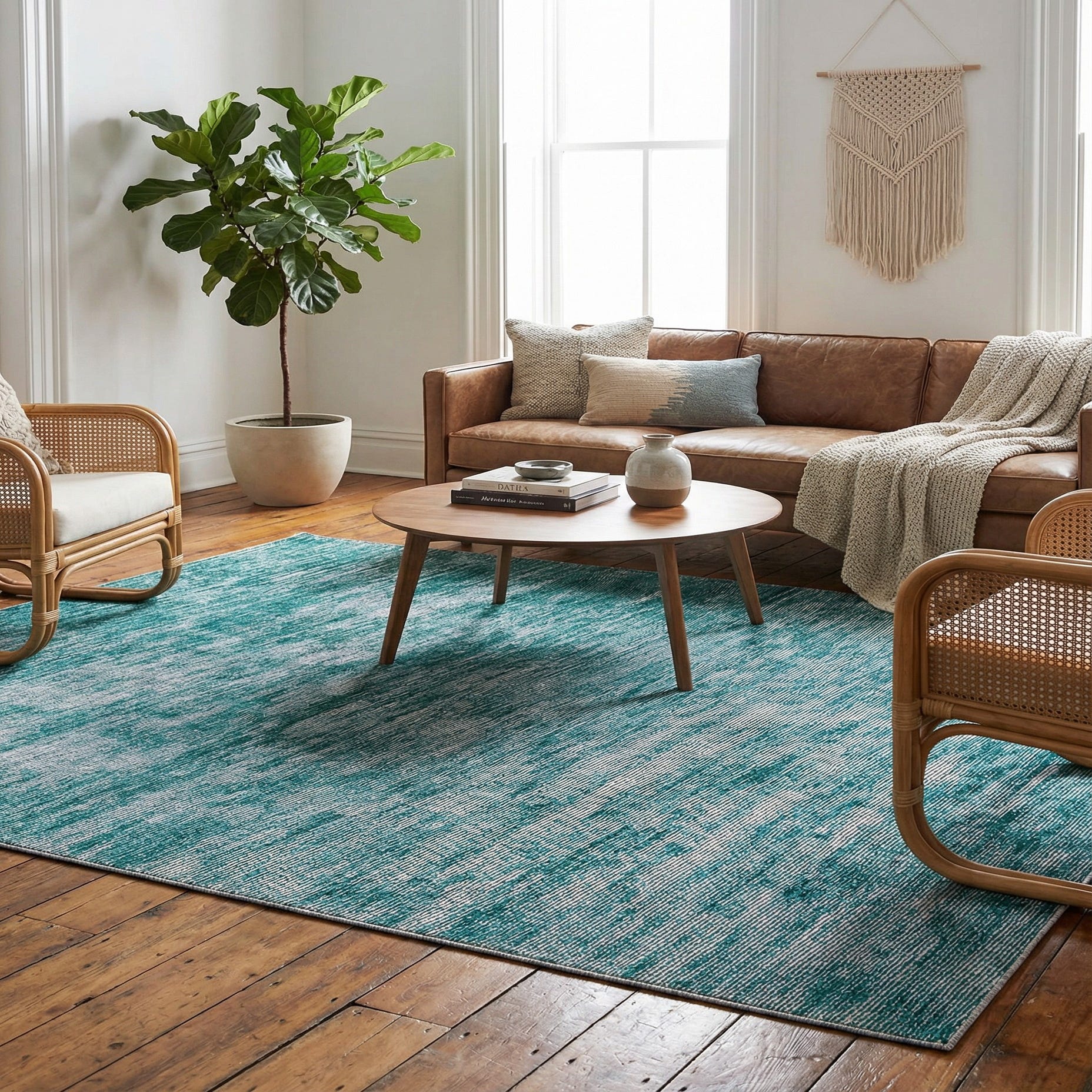 Primary color is Teal. Colors in this rug include: Teal, Ivory.