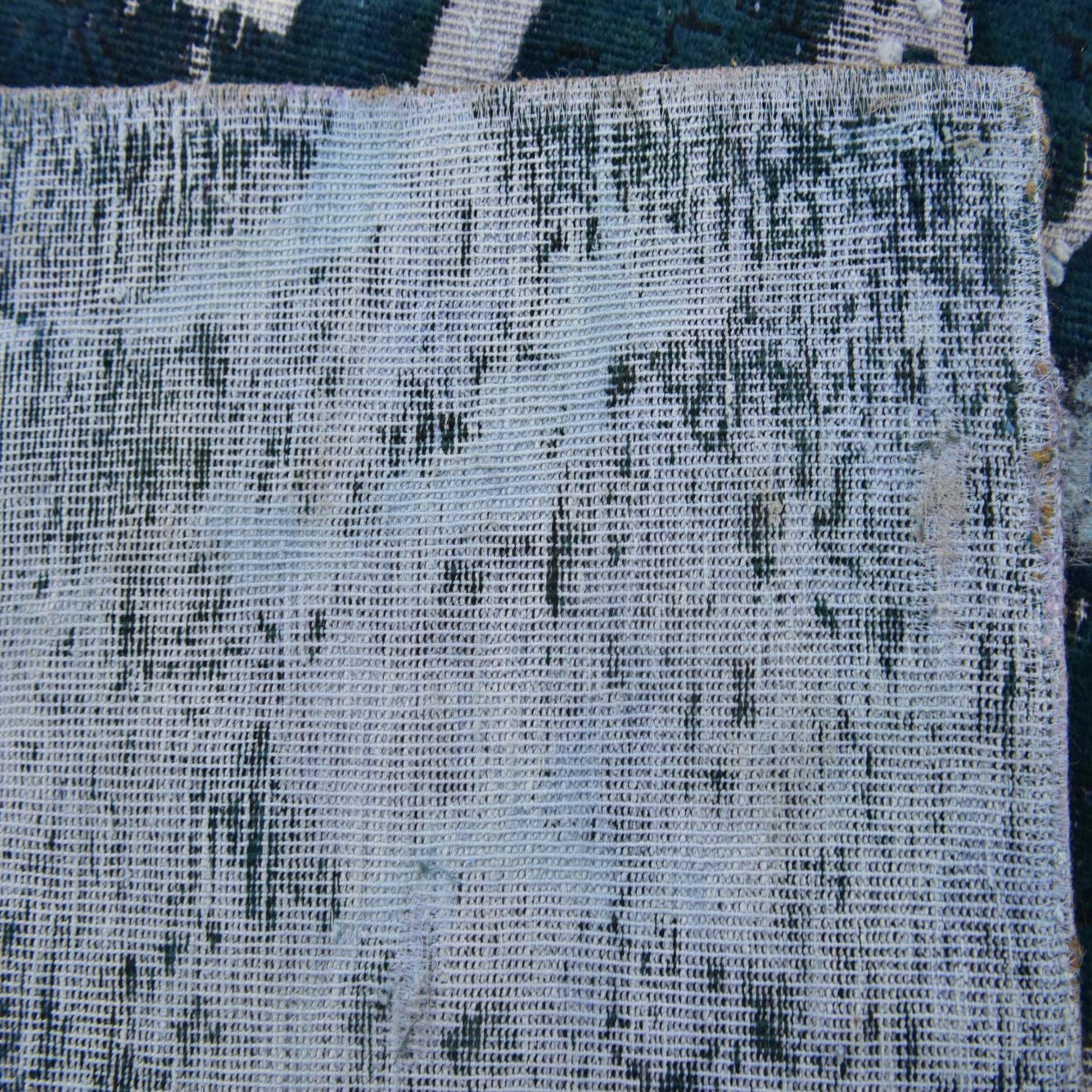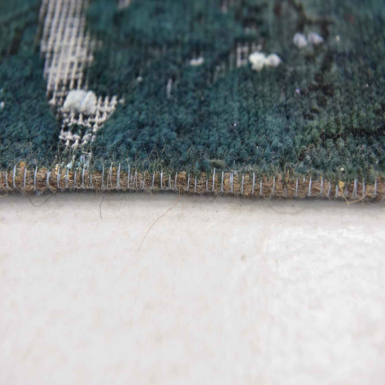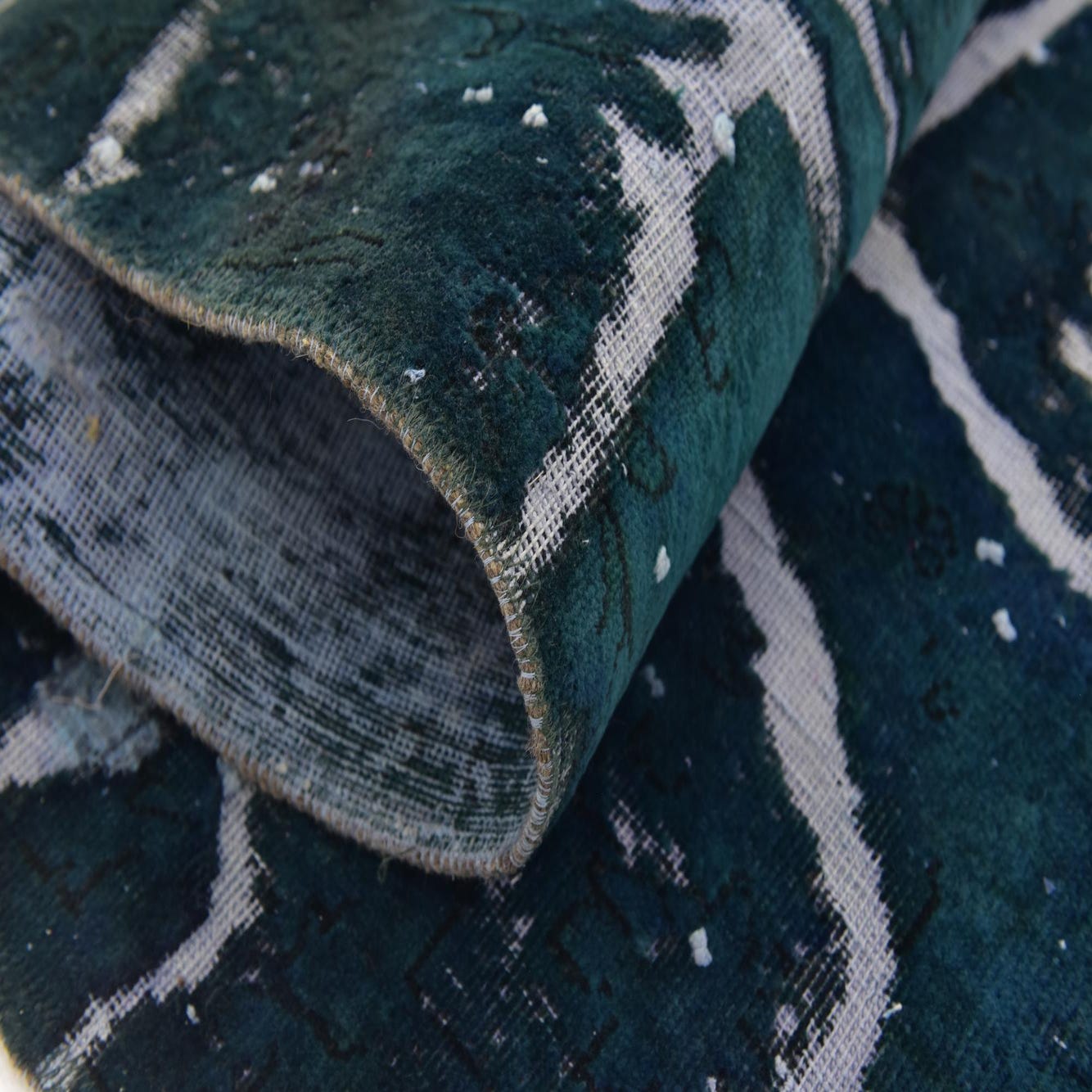 The Ultra Vintage 7 Ft Runner is a hand-knotted piece crafted from 100% wool, offering a blend of durability and comfort underfoot. The rug features an alluring pattern, reminiscent of organic, fluid forms that give the impression of a dynamic, flowing landscape. The main hue is a rich teal, providing a deep and inviting backdrop that is artfully contrasted with lines in black and touches of olive, lending a contemporary and sophisticated vibe to the design.