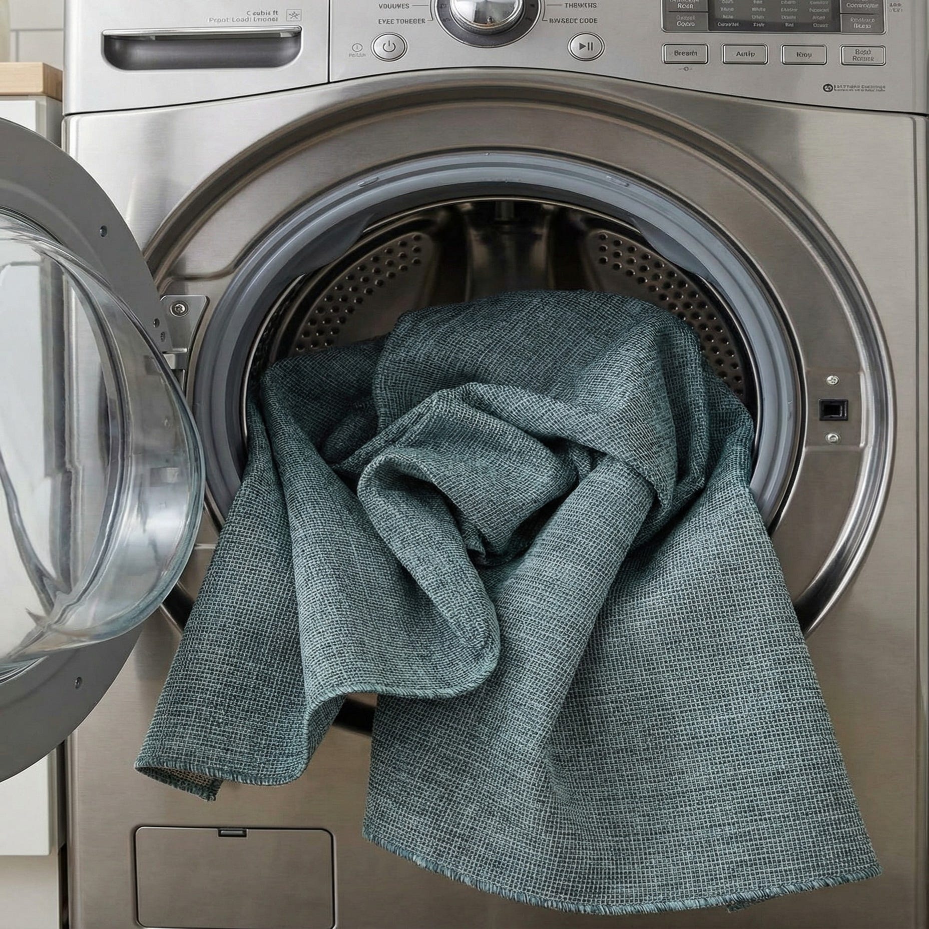 Place this piece beneath a round bistro set on a balcony, anchor a casual seating group on a covered porch, or bring color into a sunroom. It pairs well with light teak or weathered-wood furniture and black metal accents that echo the woven black threads, and looks at home in coastal, contemporary, or transitional schemes where a calm pop of teal is desired.