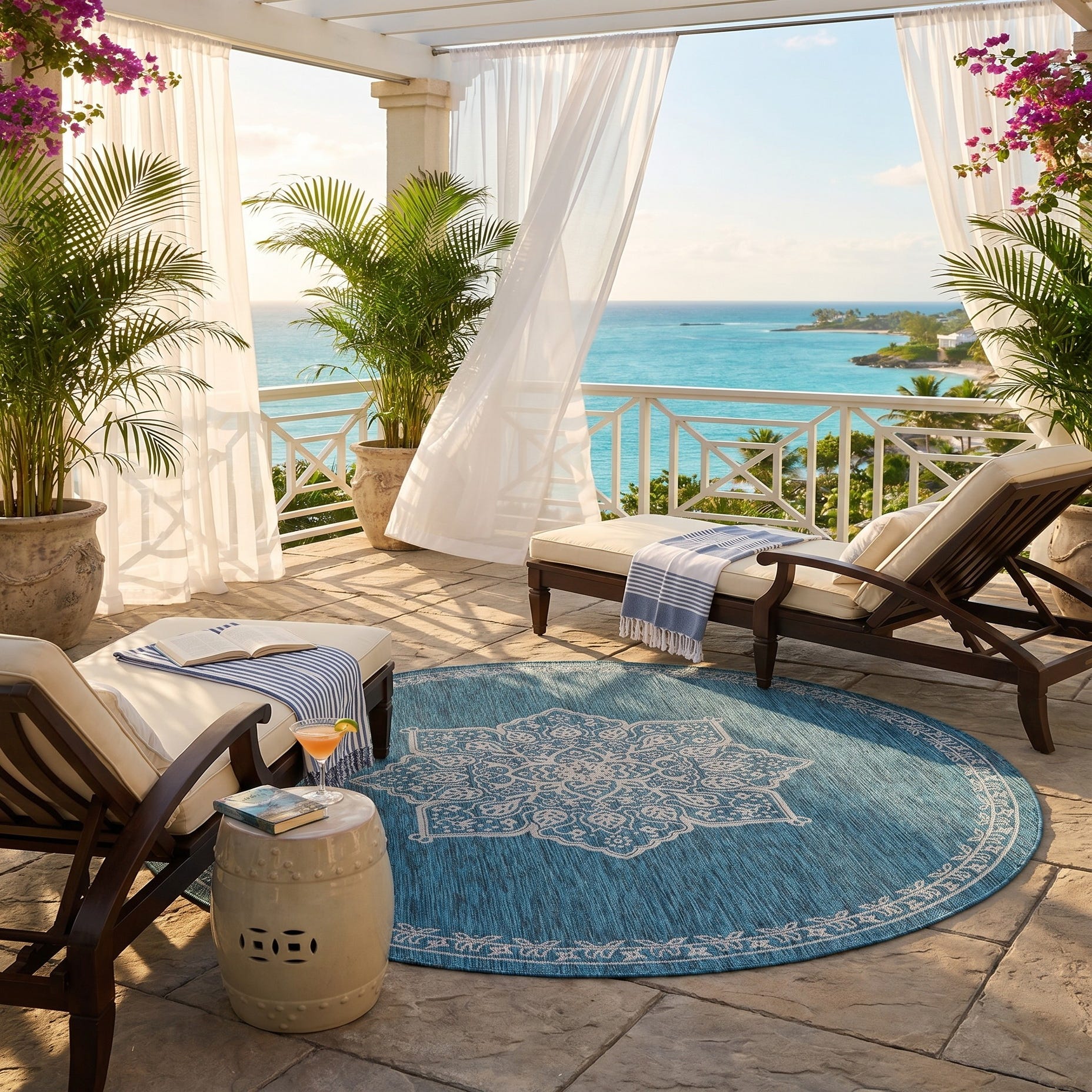7' 10 x 7' 10 Easy-Clean Traditional Indoor / Outdoor Round Rug