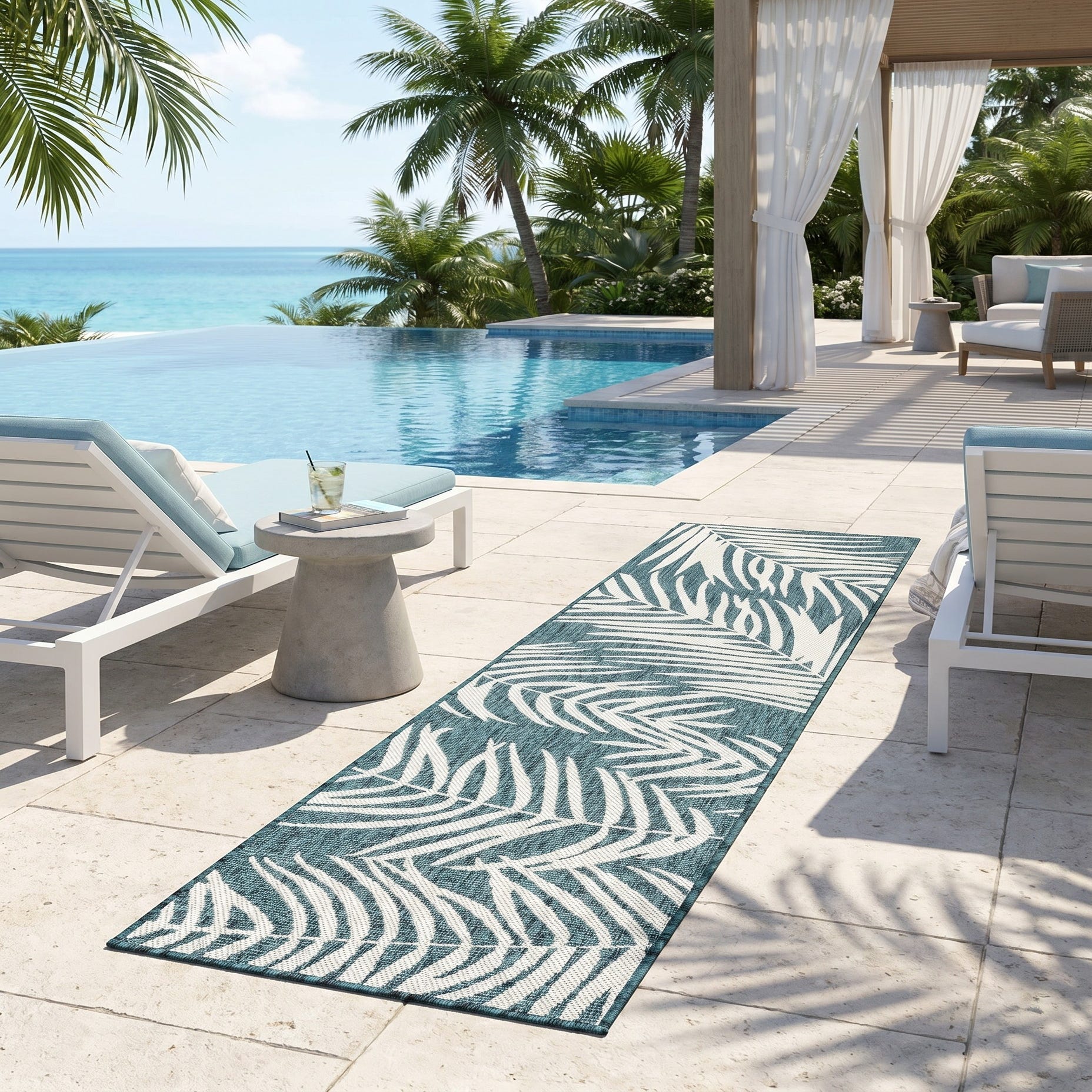 2' x 8' Easy-Clean Botanical Indoor / Outdoor Runner Rug