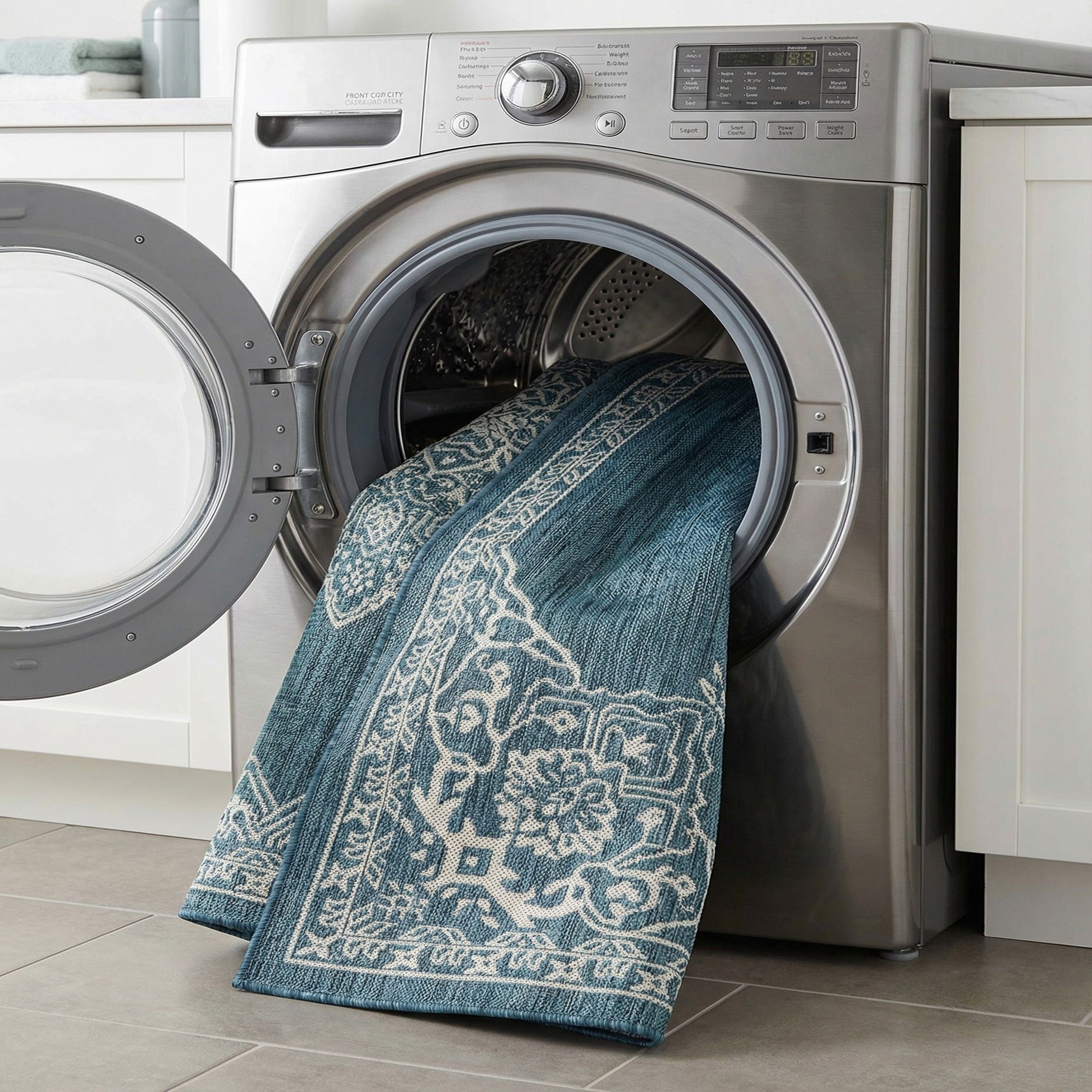 7' 10 x 7' 10 Washable Traditional Indoor / Outdoor Square Rug