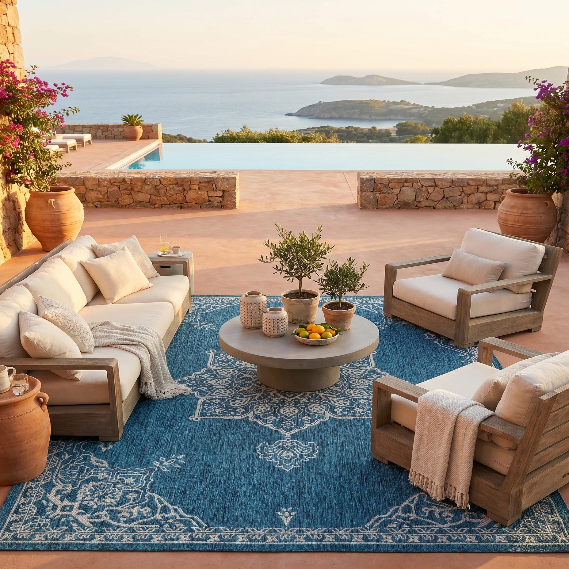 7' 10 x 10' Easy-Clean Traditional Indoor / Outdoor Rug