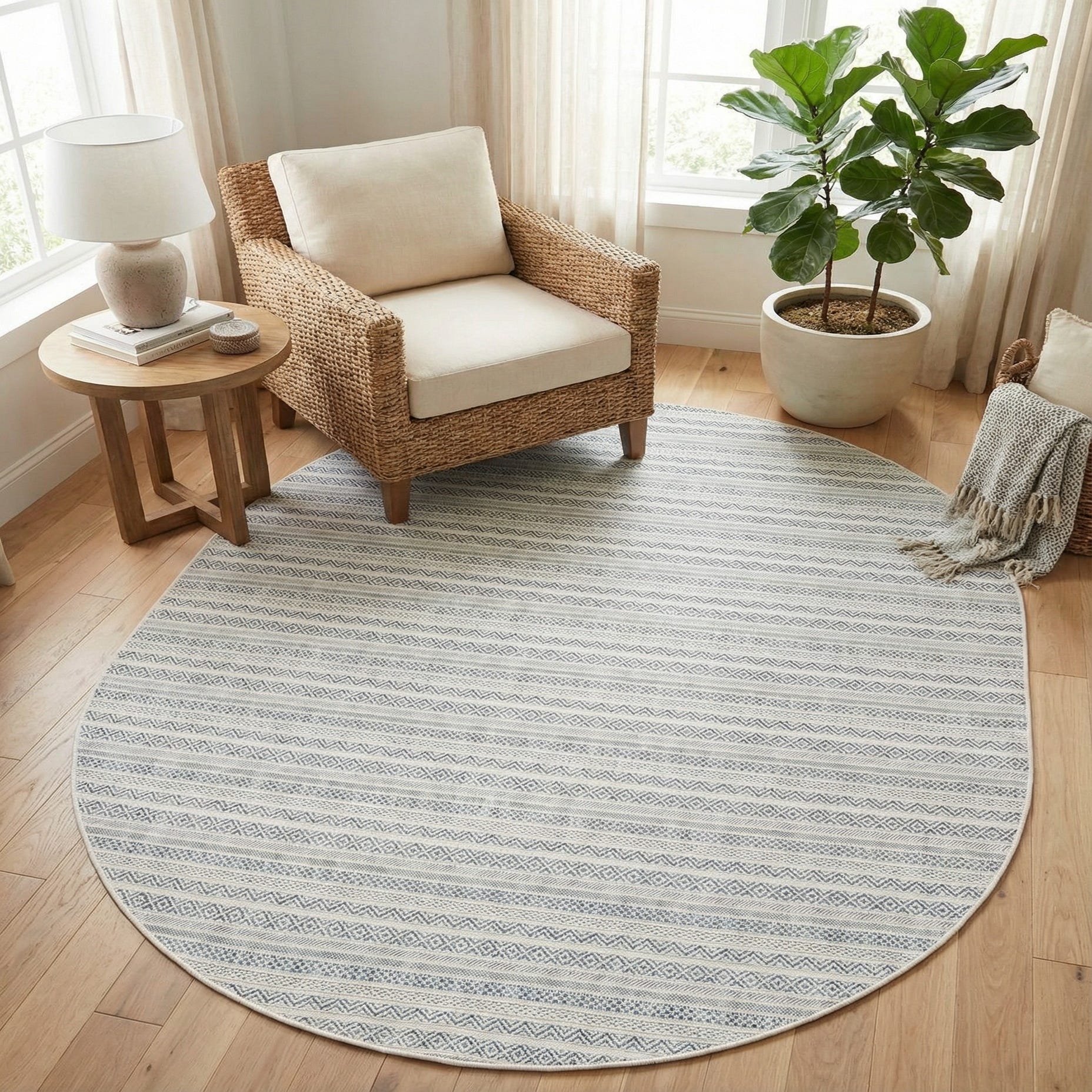 7' 10 x 10' Washable Ribbon Indoor / Outdoor Oval Rug