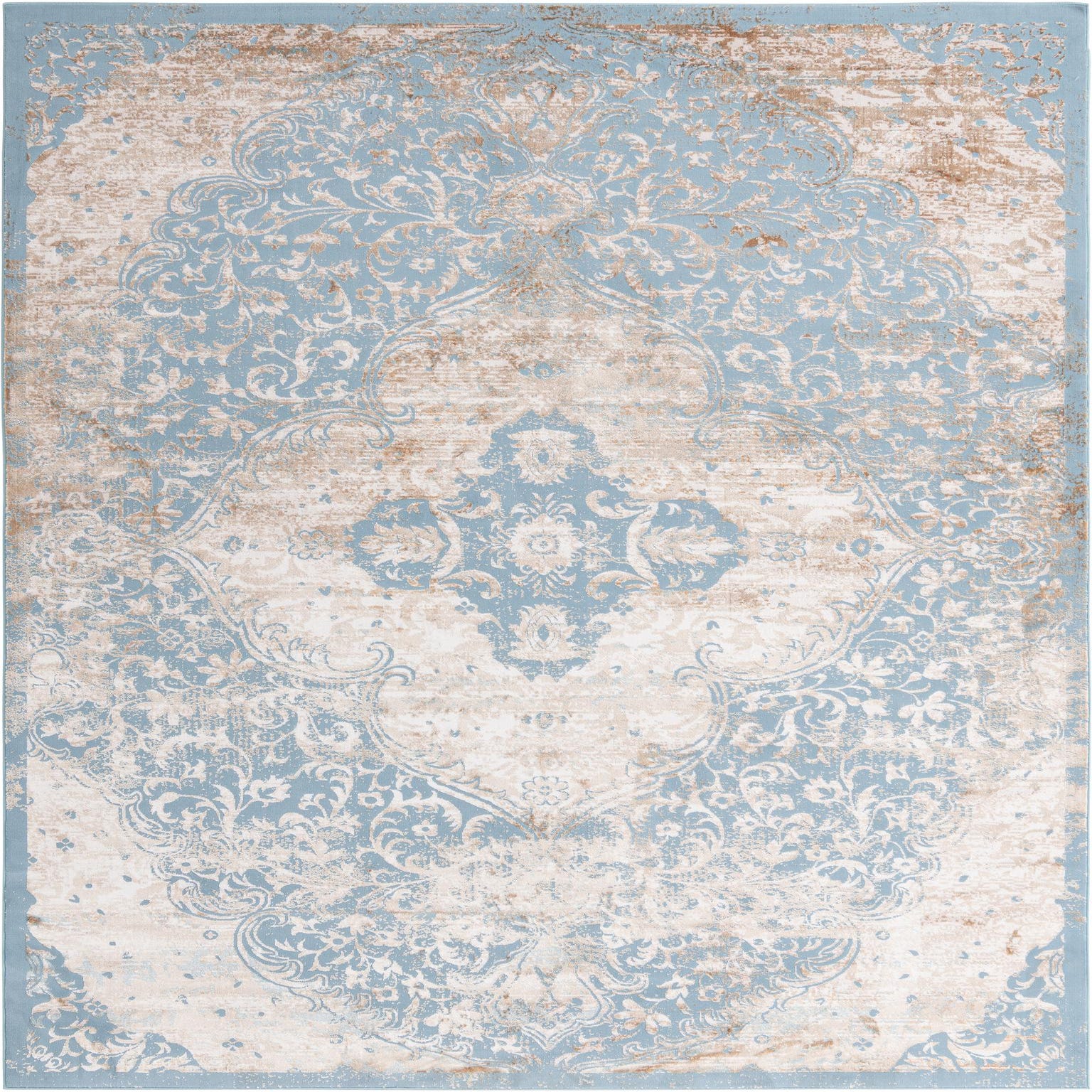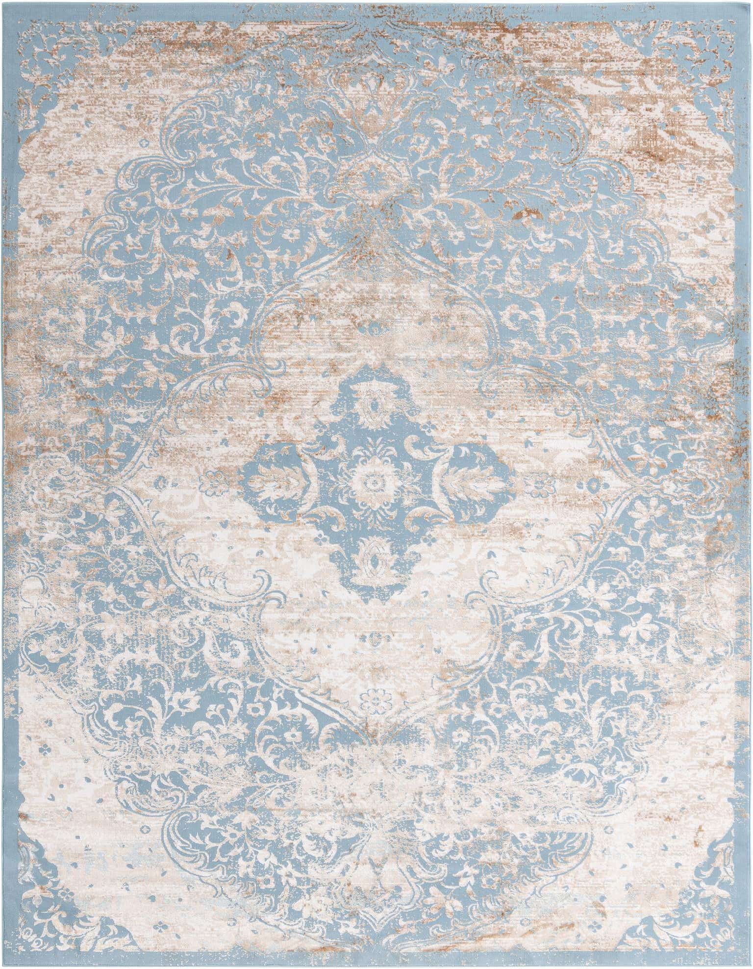 Primary color is Teal. Colors in this rug include: Teal, Light Brown, Gray, Ivory.
