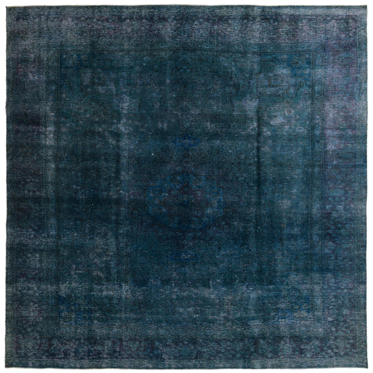 A 9x12 rectangular Ultra Vintage rug, primarily blue and green, featuring a faded Persian pattern, ideal for a living room.