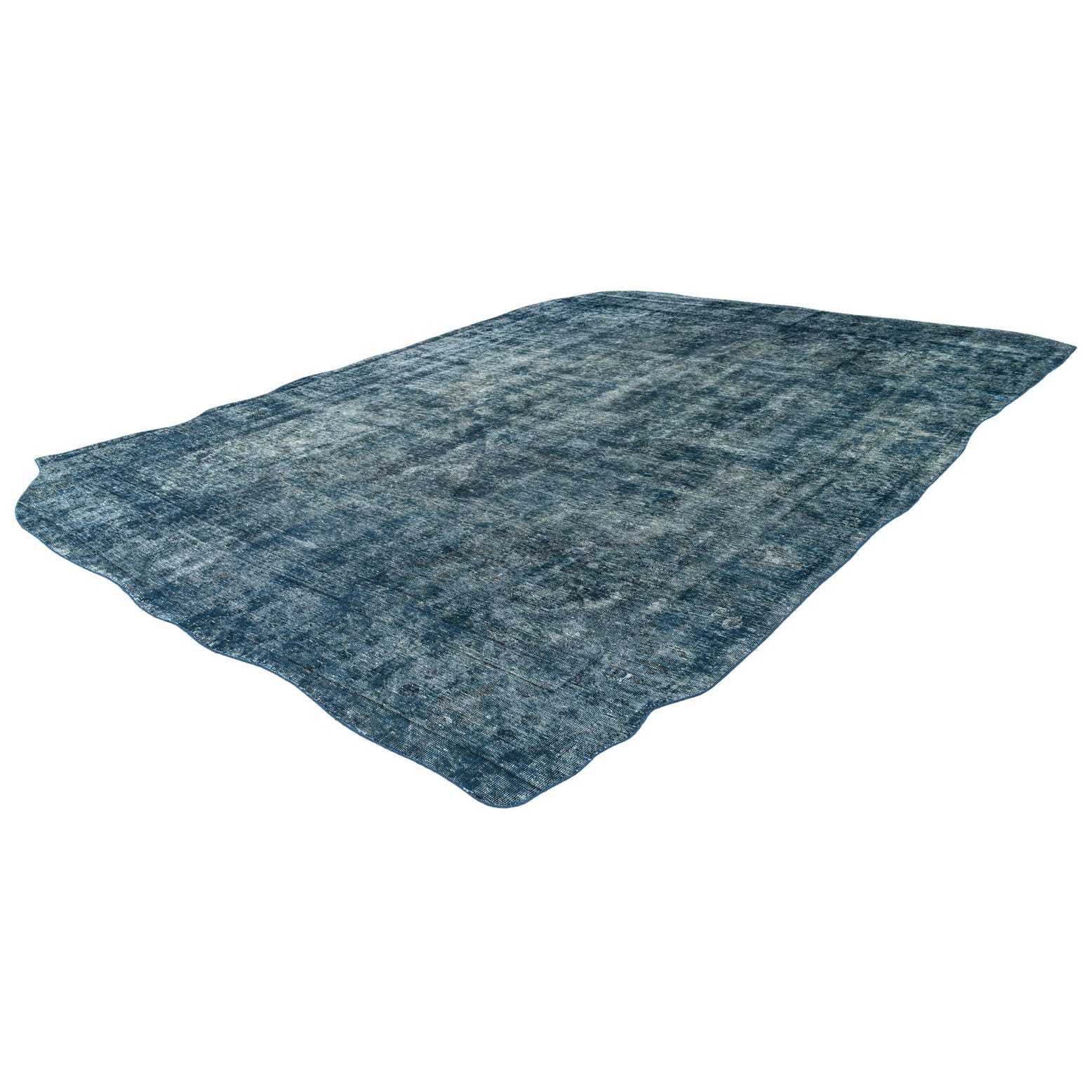 A 9x12 rectangular Ultra Vintage rug in distressed blues and greens with a subtle Persian medallion pattern.