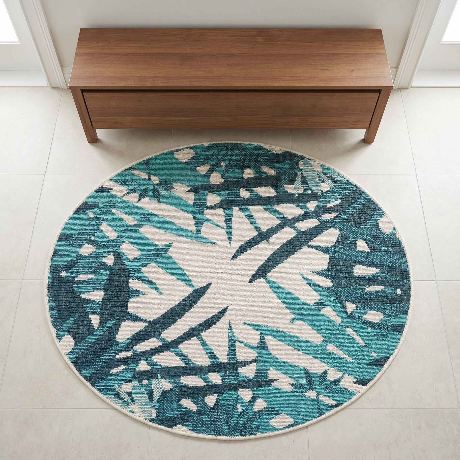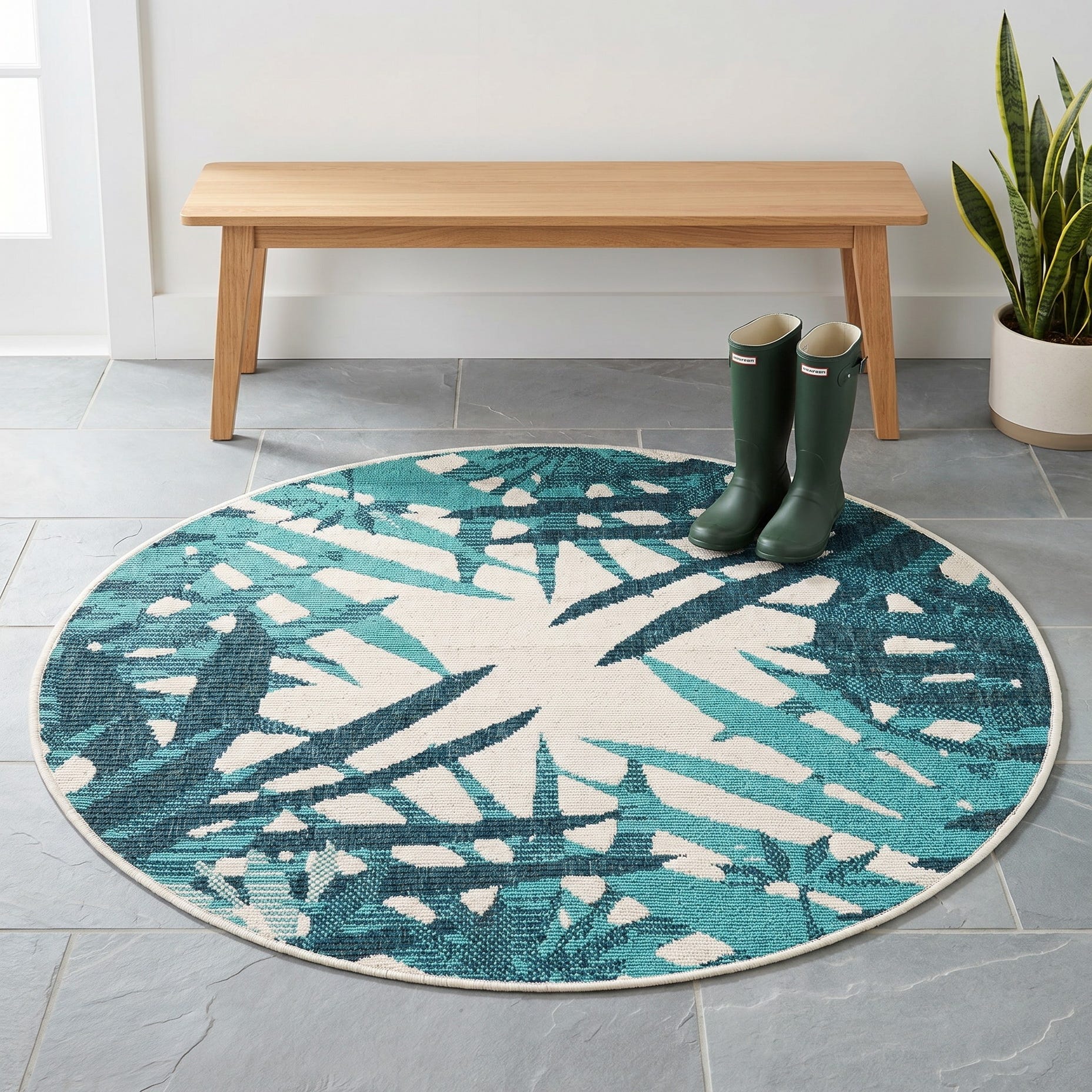 3' x 3' Easy-Clean Botanical Indoor / Outdoor Round Rug