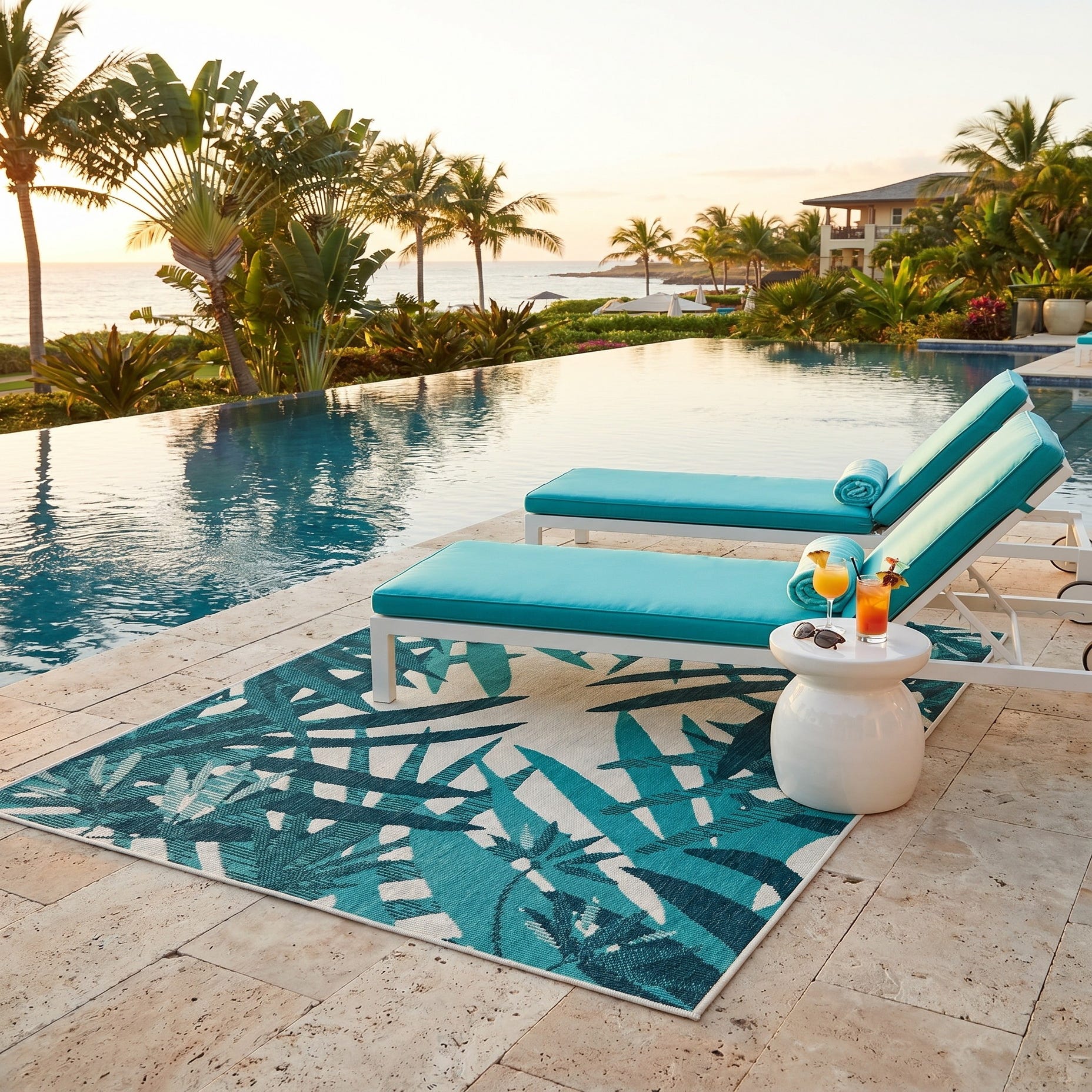 The colors harmonize perfectly with my deck and surrounding planters. The rug anchors my outdoor table. It’s already been drenched once from a soaking rain and dried out with no wrinkles. I love this rug.!