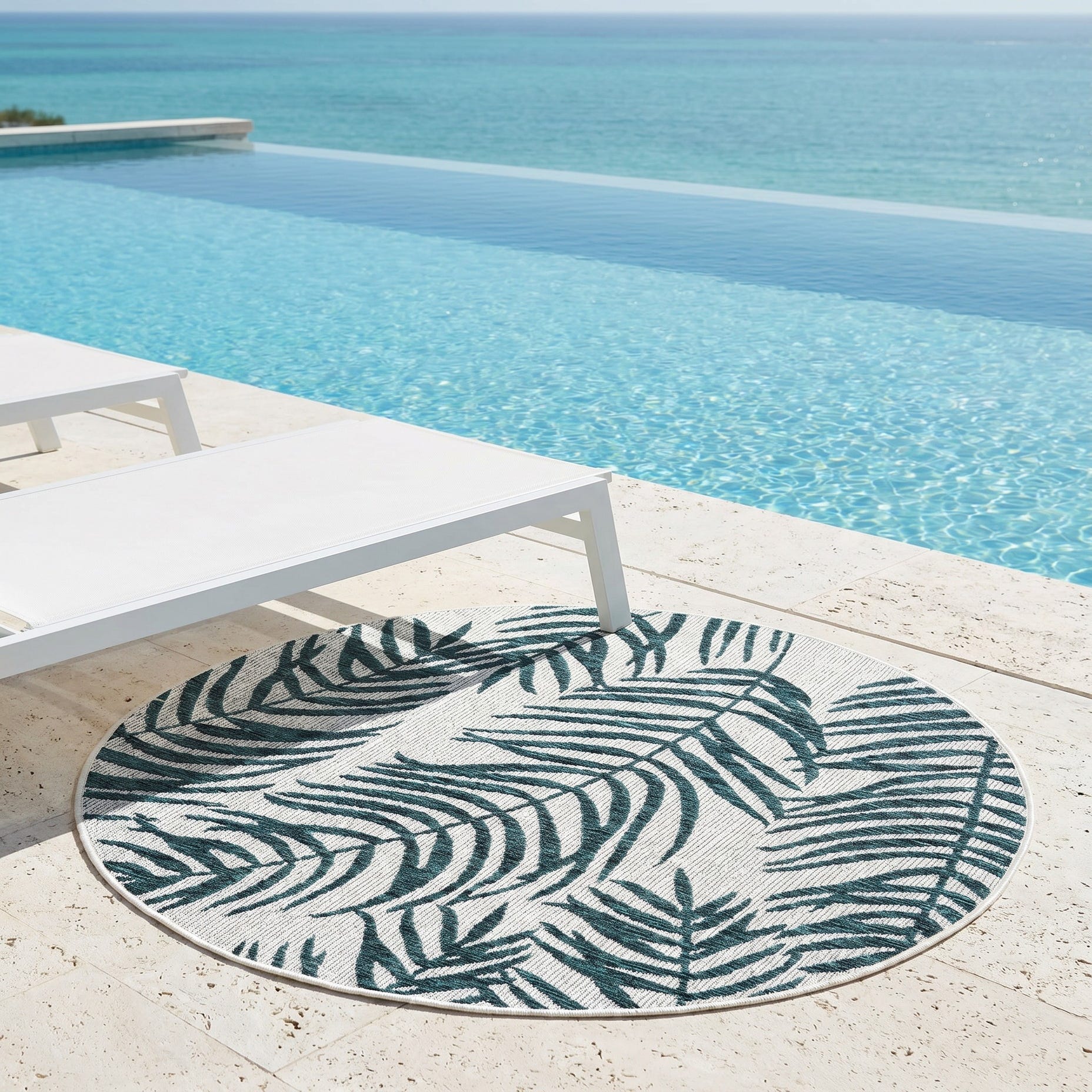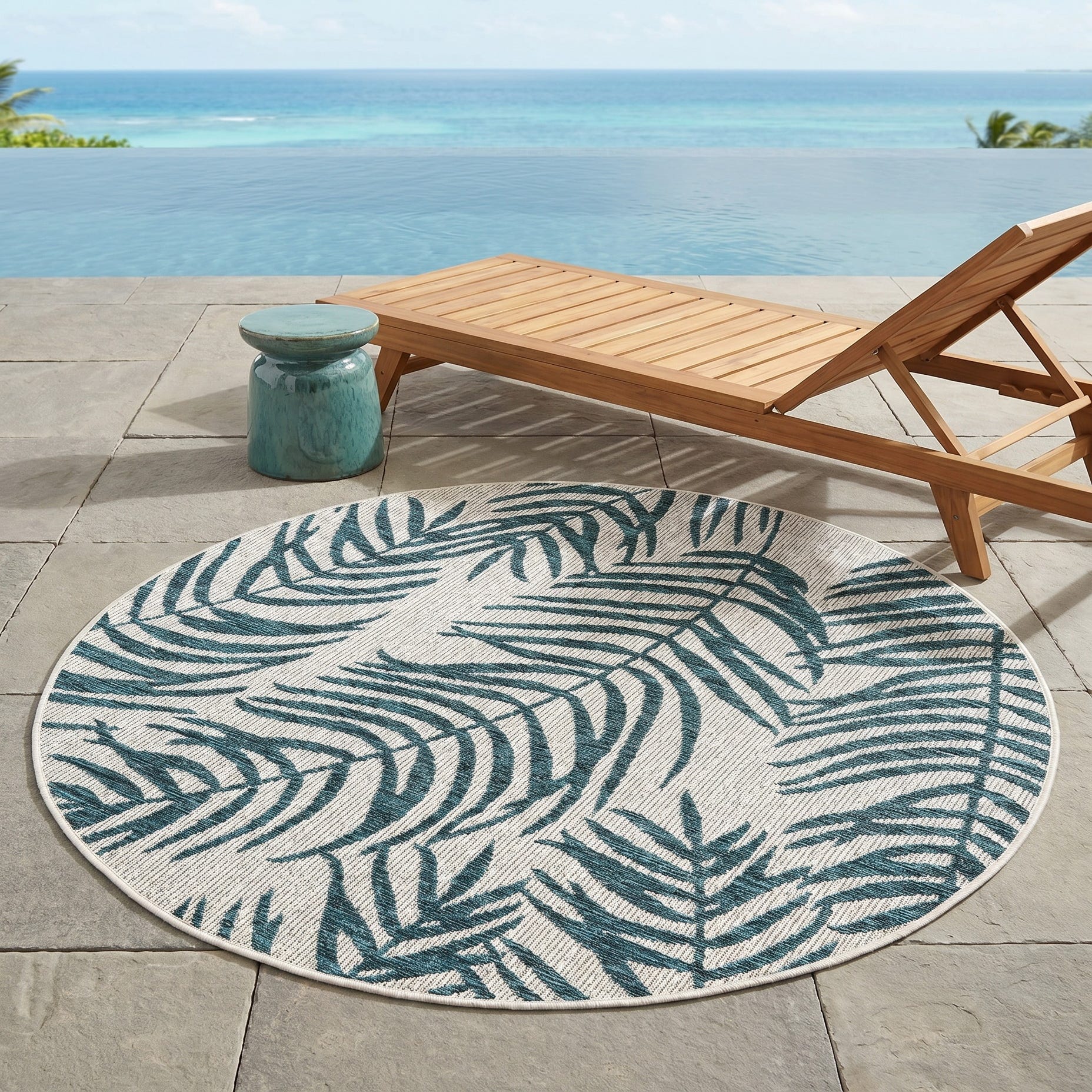 4' x 4' Easy-Clean Botanical Indoor / Outdoor Round Rug