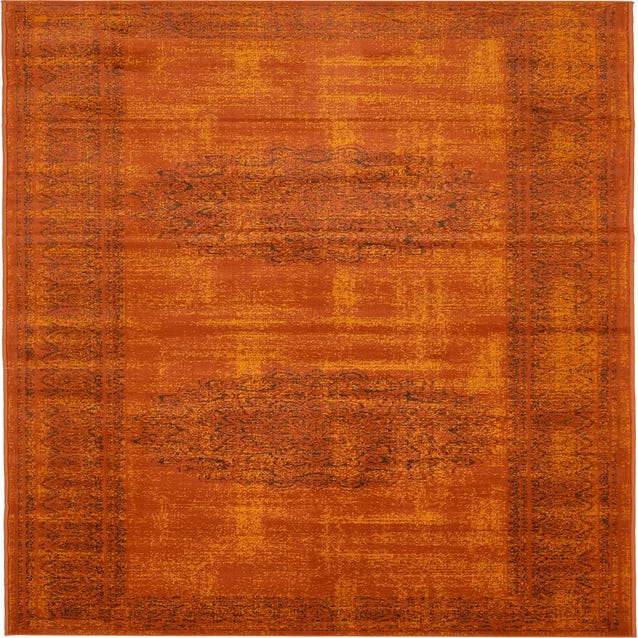 A warm terracotta ground sets the tone for this runner, where a vintage-inspired medallion pattern and narrow border are softened by a deliberate distressed finish. Orange highlights catch the eye while brown accents define the medallions and scrolling details, creating depth through tonal layering rather than stark contrast. Machine-made of 100% polypropylene, the low-pile surface feels smooth and dense underfoot with a resilient, tightly woven texture that maintains the rug’s pattern and color saturation.