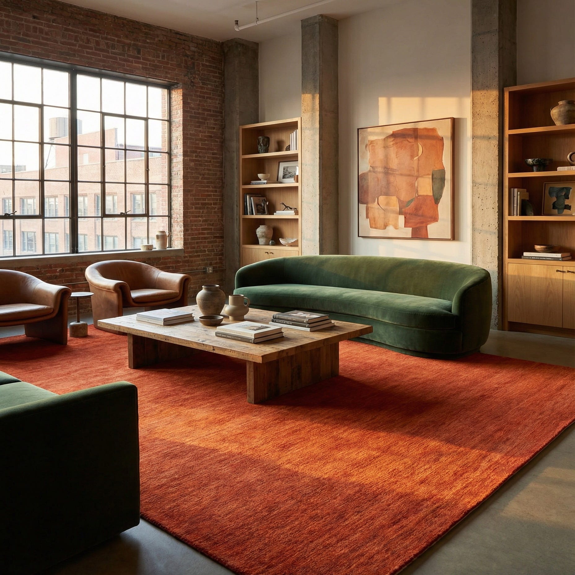 Primary color is Terracotta. Colors in this rug include: Terracotta, Red.