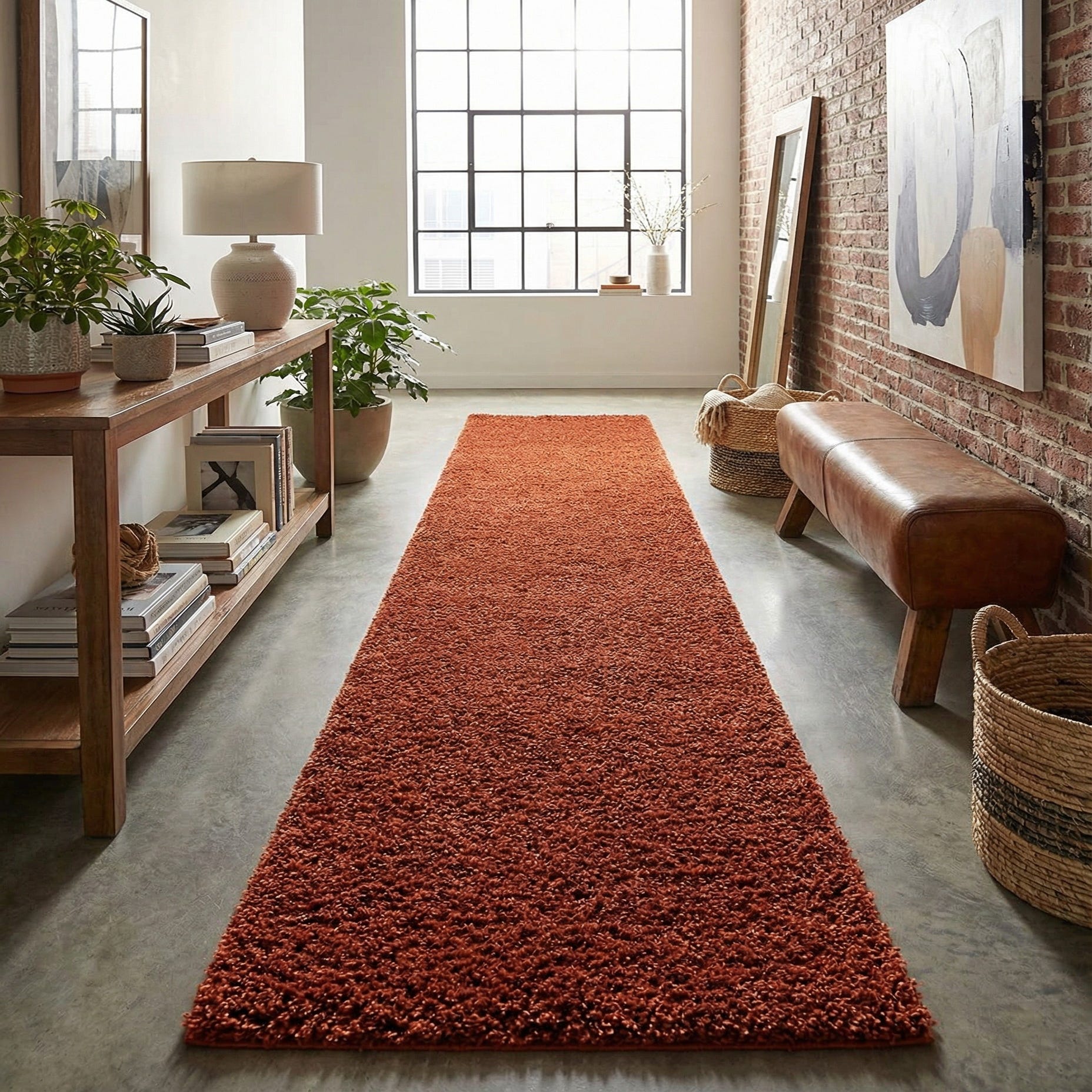 Place this runner where you want a dose of warmth and softness—hallways, entryways, alongside beds or in narrow kitchen corridors are natural fits. It pairs well with warm wood tones and neutral upholstery, and complements mid-century modern pieces, industrial black metal accents, or layered bohemian styling with woven throws and earthen pottery.