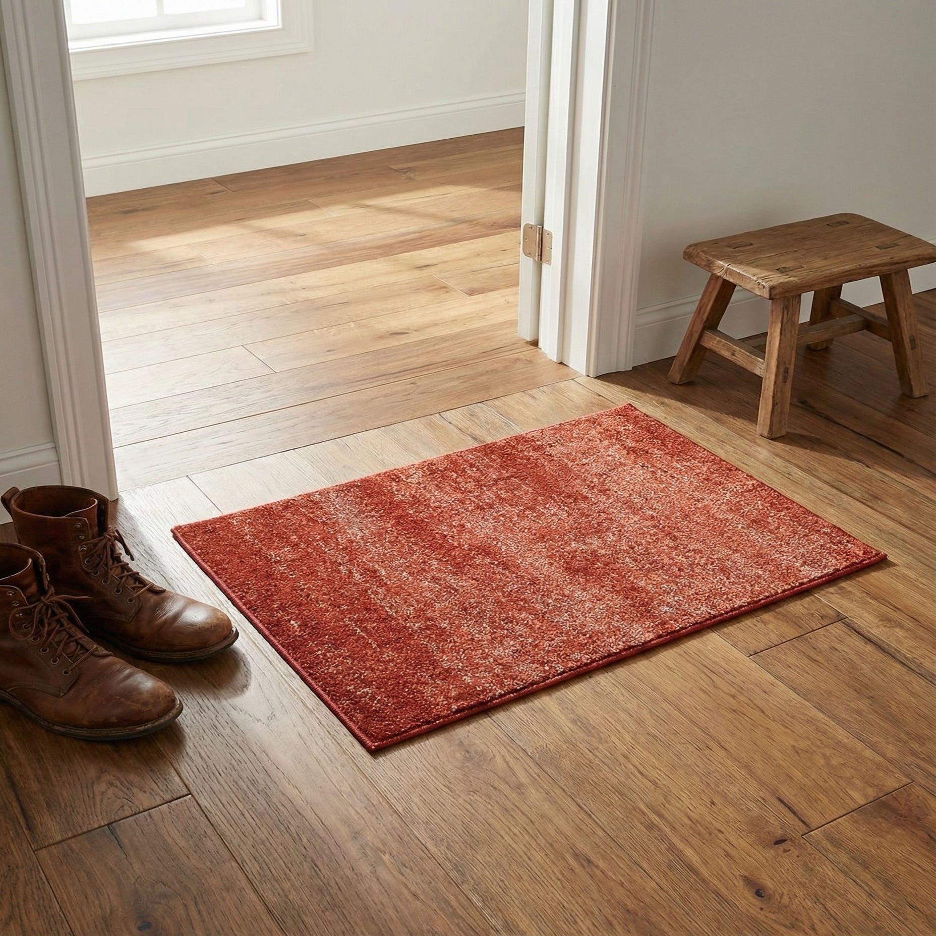 Primary color is Terracotta. Colors in this rug include: Terracotta, Red, Rust Red.