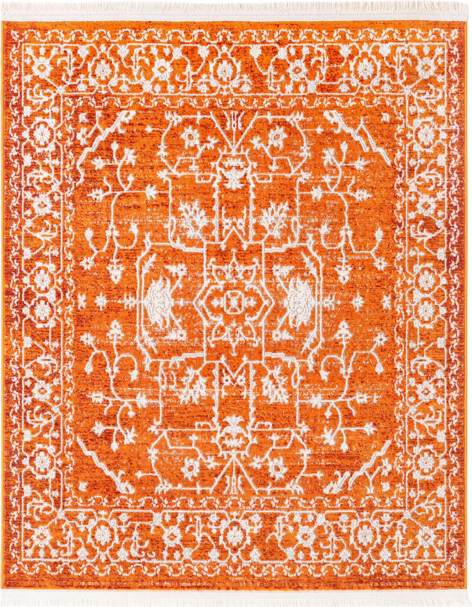 This 4 Ft Square area rug from our Modern Classical collection offers a bold terracotta background with a contrasting ivory pattern, embodying a vibrant take on traditional design elements. The machine-woven construction, crafted from a blend of 70% Polypropylene and 30% Polyester, gives this rug a soft texture that is both stain-resistant and shed-free, ensuring durability and ease of maintenance.
