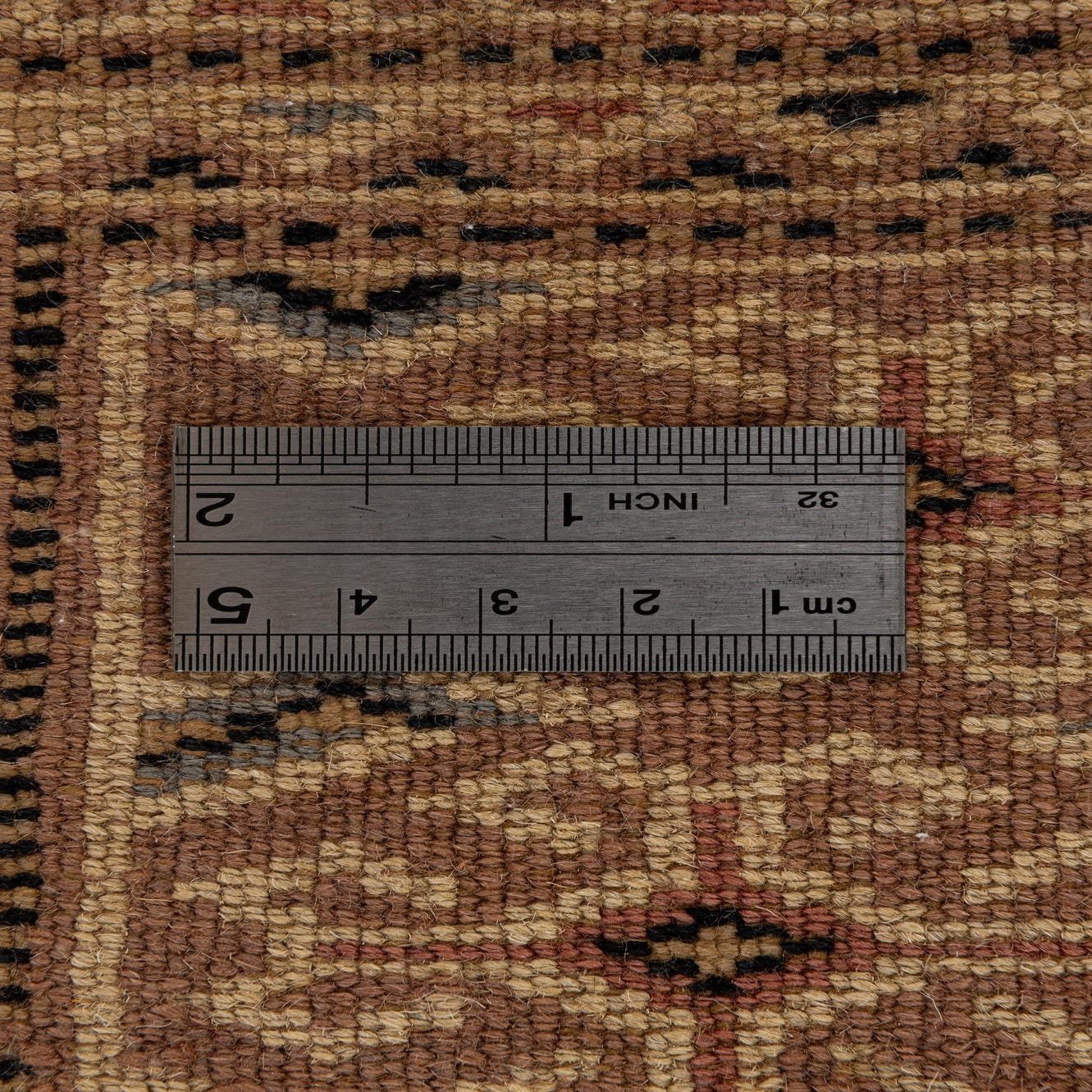 Primary color is Terracotta. Colors in this rug include: Terracotta, Black, Brown, Cream, Gray, Light Brown.