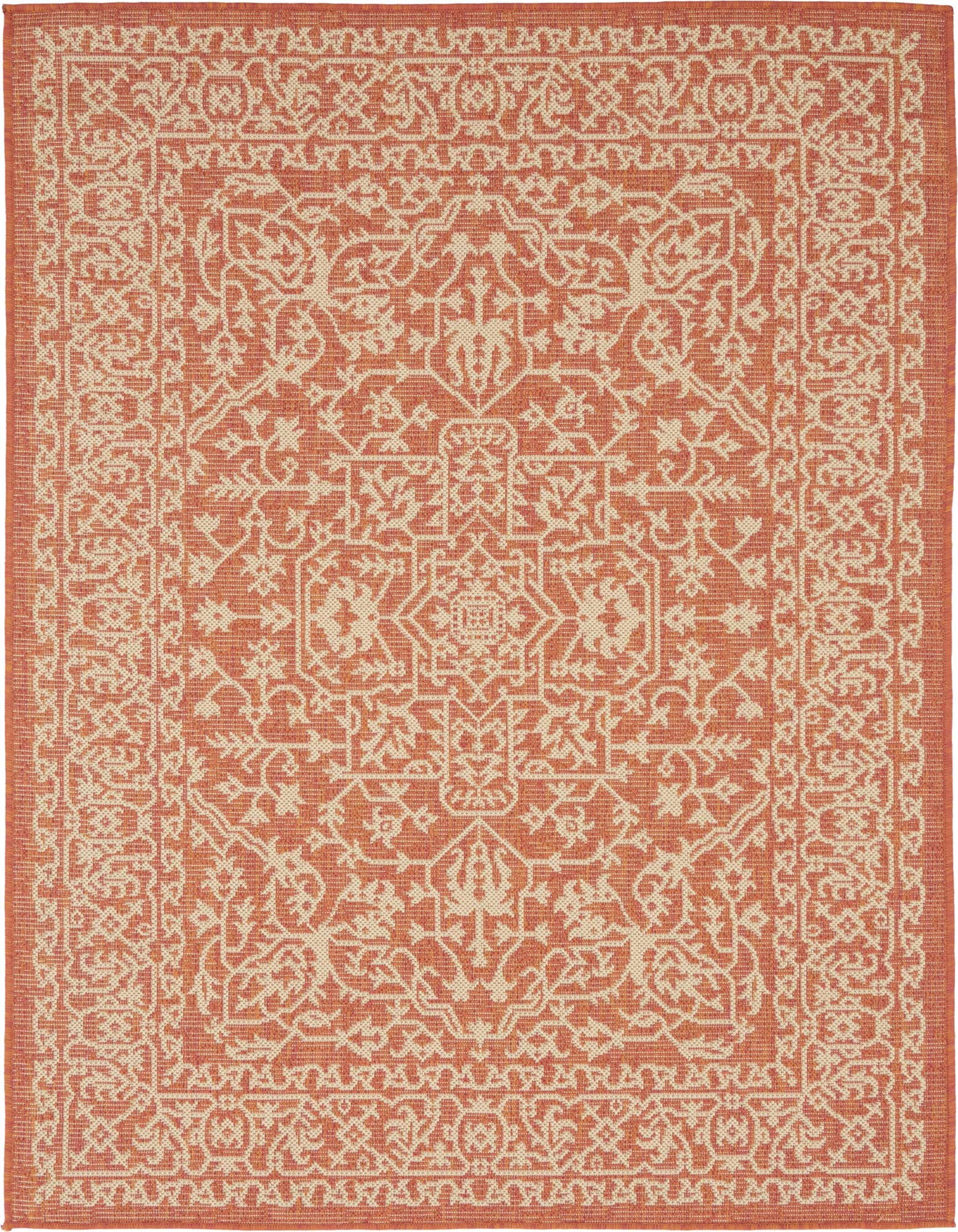 Primary color is Terracotta. Colors in this rug include: Terracotta, Beige.