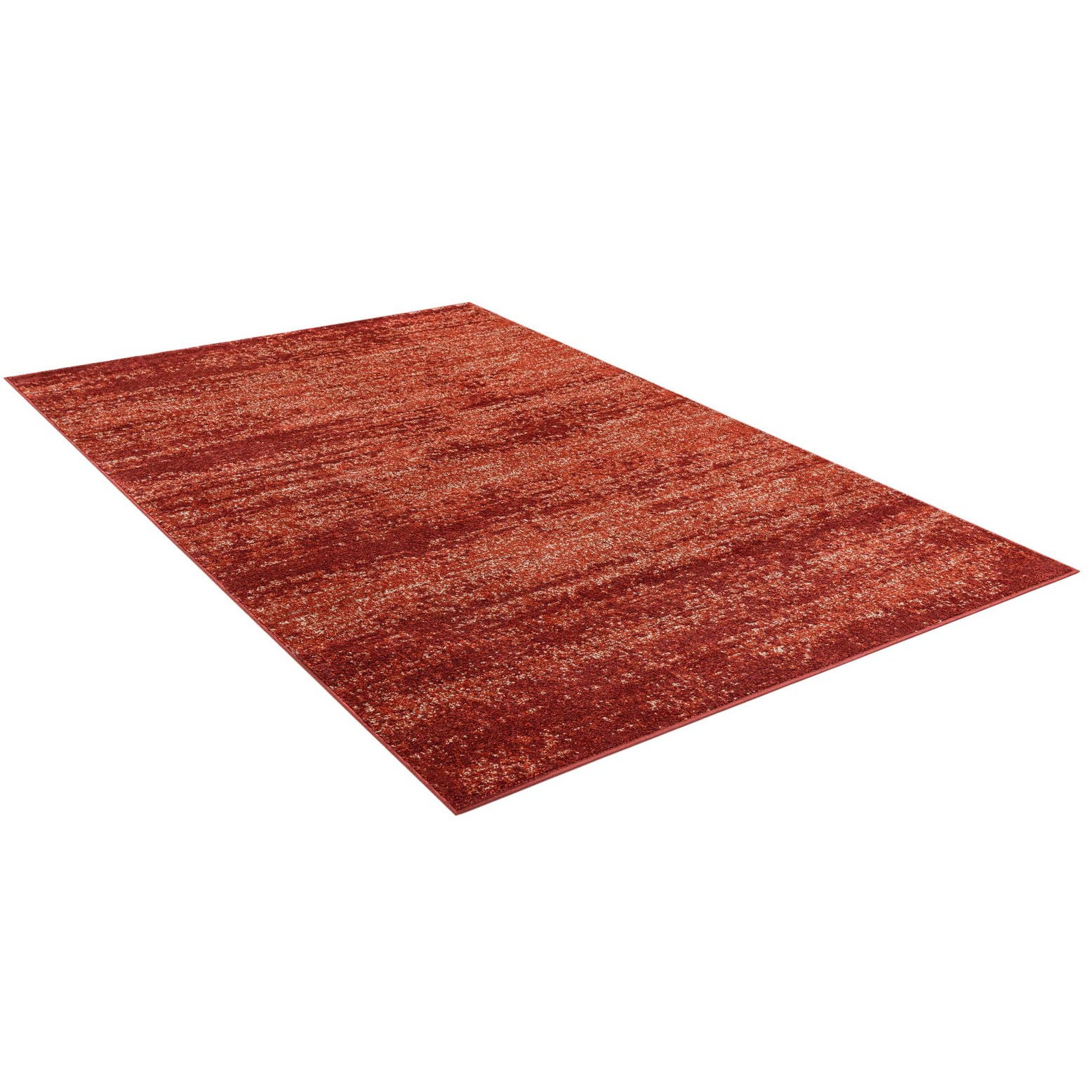 The Angelica Collection offers a harmonious blend of contemporary design and comforting warmth with its 5x8 area rug. Machine woven from 100% polypropylene, this piece presents a rich terracotta background, nuanced with shades of red and rust red that create a subtly mottled appearance. The smooth, inviting texture offers a touch of visual depth without overwhelming the senses.