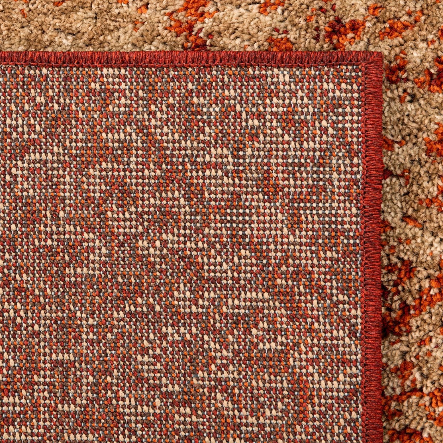 Primary color is Terracotta. Colors in this rug include: Terracotta, Beige, Burgundy.
