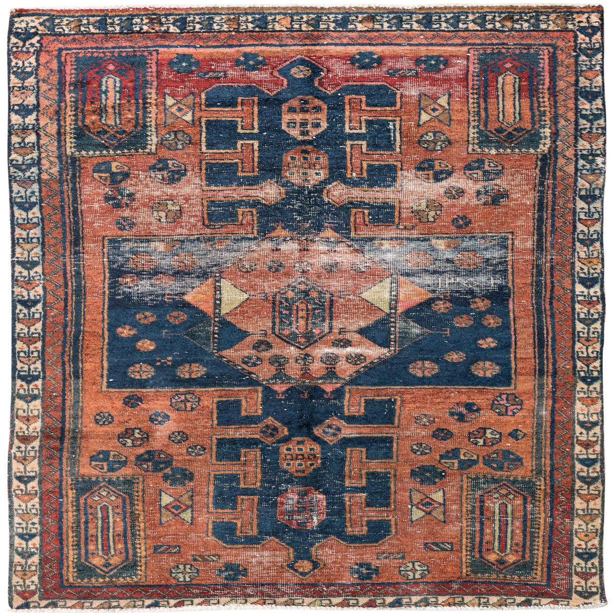 Given its robust pattern and deep, warm colors, the rug suits a variety of interior designs. It can serve as a focal point in a traditional setting, harmonize with the warm wood tones in a rustic layout, or add a touch of history to a modern minimalist space. Its size enables it to anchor smaller living spaces, define seating areas in open-plan rooms, or add a sophisticated touch to a bedroom or home office.