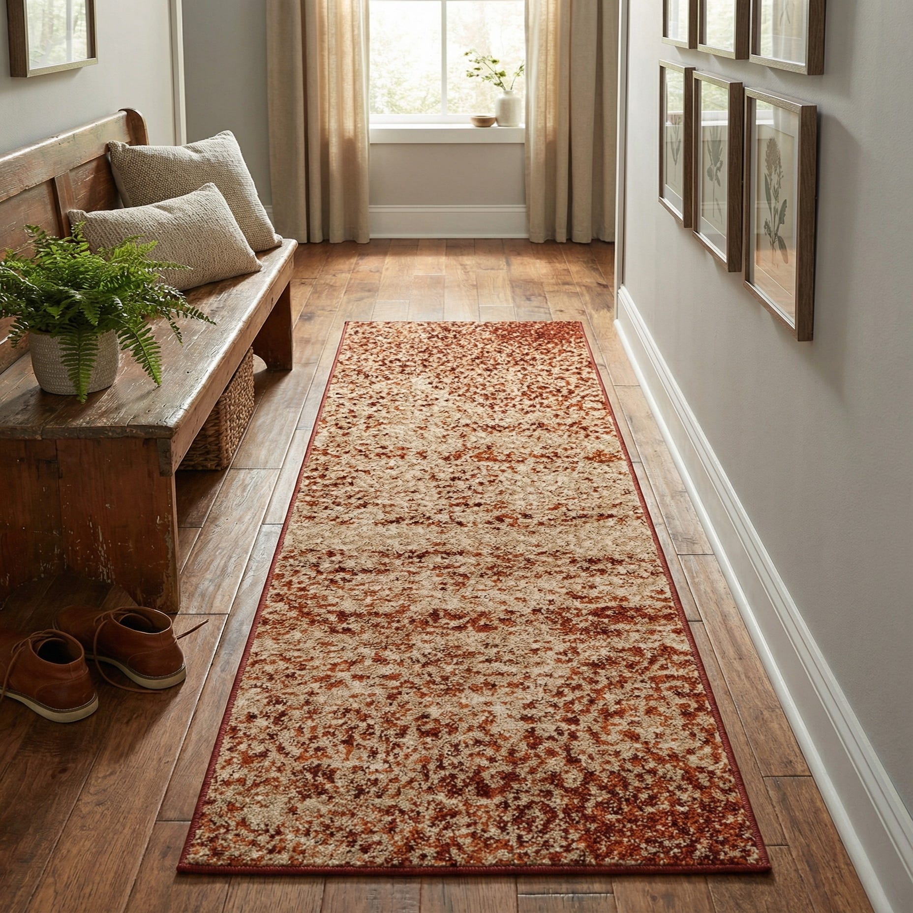 Machine made from 100% polypropylene, the runner has a plush, cut-pile feel that’s soft underfoot and holds the pattern with clear definition. Place it in a hallway or entry to add color and texture, use it as a kitchen or stair runner to warm the space, or layer it in a living area anchored by warm wood or leather pieces. It pairs particularly well with mid-century modern lines, bohemian layers, or contemporary interiors that benefit from a touch of organic warmth.
