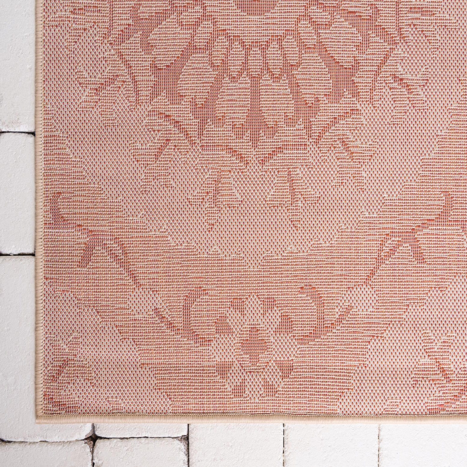 Primary color is Terracotta. Colors in this rug include: Terracotta, Beige.