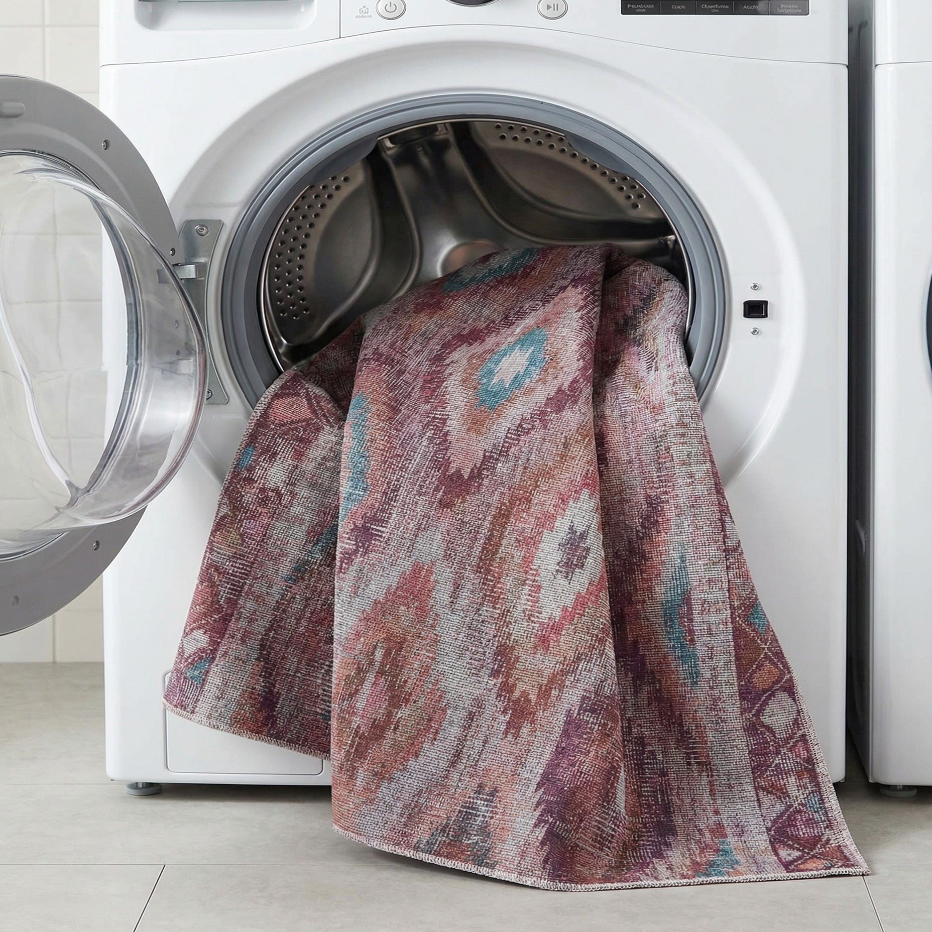 This rug pairs naturally with warm wood tones, leather seating and textured linens, making it a good anchor for living rooms, layered bohemian spaces or casual dining areas. It also complements eclectic and mid-century interiors where color and pattern add personality, and it can warm a bedroom beside a bed or provide a cozy focal point under a coffee table. The multicolor, distressed look blends easily with both neutral and richly hued furnishings, creating a lived-in, inviting atmosphere.