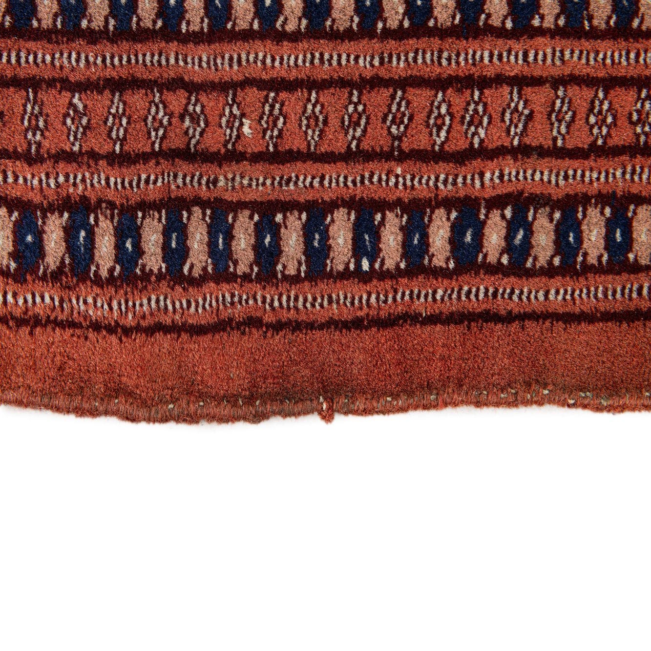 Primary color is Terracotta. Colors in this rug include: Terracotta, Ivory, Navy Blue.
