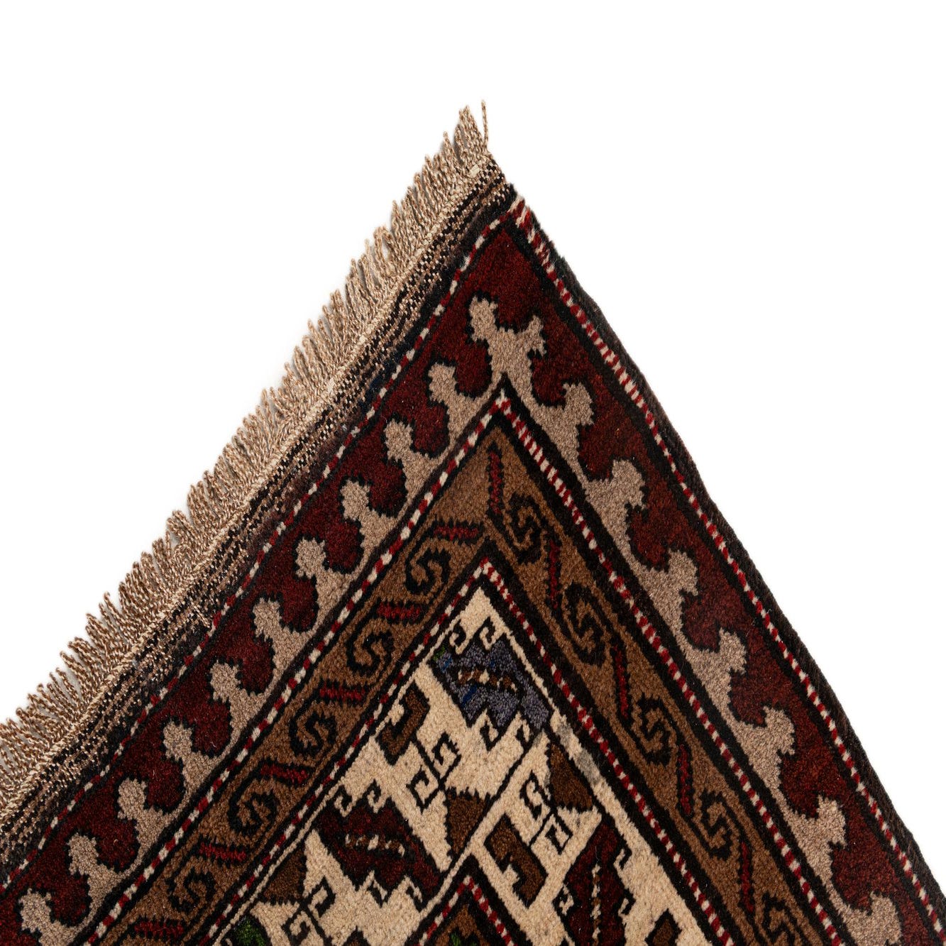 Primary color is Terracotta. Colors in this rug include: Terracotta, Blue, Brown, Green, Light Brown, Gray.