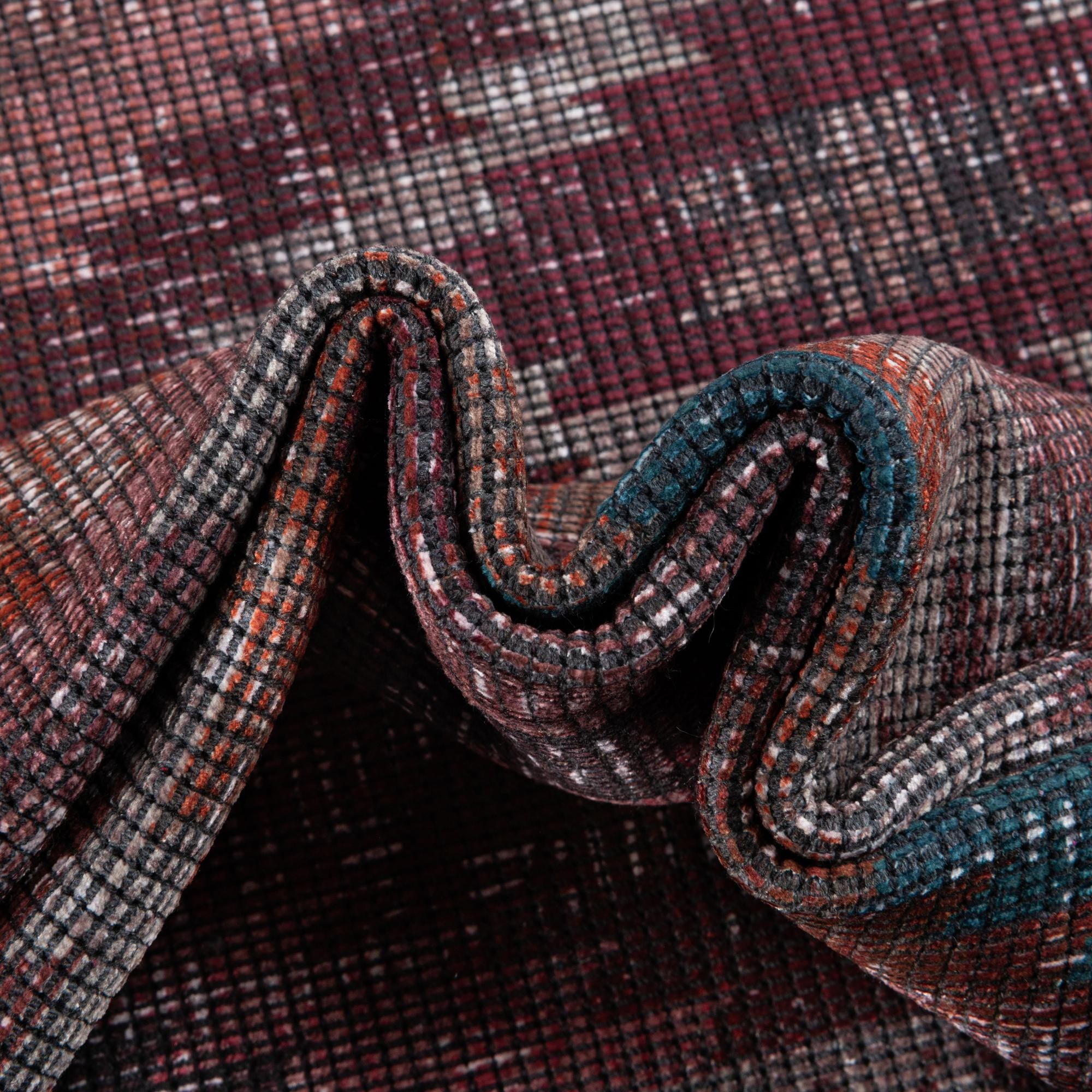 A warm terracotta field sets the stage for a softly distressed, geometric pattern of stepped diamond medallions. The palette mixes rust red, orange, pink and brown with pops of turquoise and touches of gray and ivory, creating a layered, slightly faded look that reads like a modern take on Southwestern and vintage ikat motifs. Machine made of polyester chenille, the rug’s surface has a low, velvety hand and a subtle sheen that invites touch while maintaining a flat, easy-living profile. The octagonal silhouette gives the piece a distinctive footprint that works well where a round or square rug might be expected but you want a bit more visual interest.