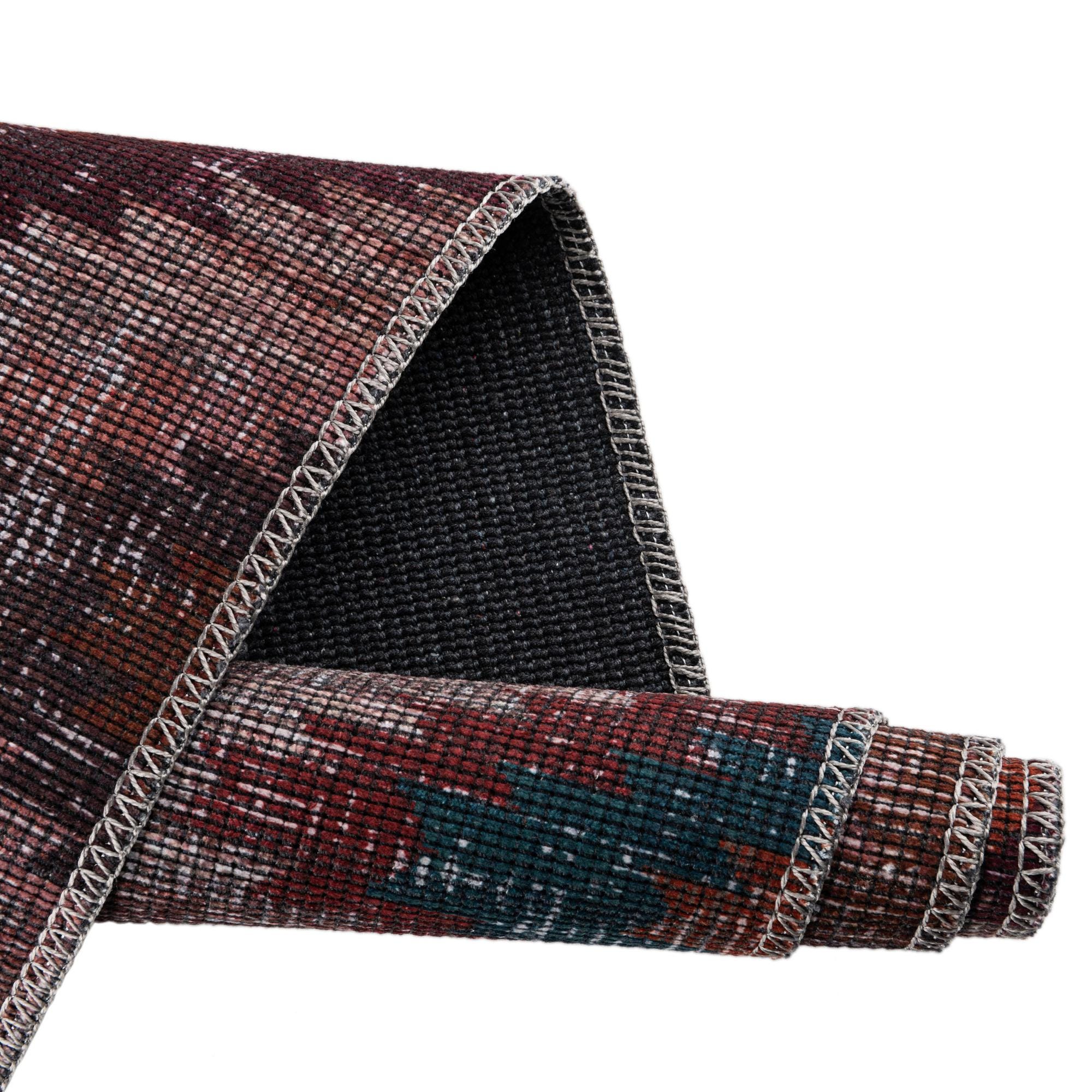 Place this rug in a cozy seating area, foyer, or a breakfast nook to anchor furniture without overwhelming the space. It pairs well with warm woods and leather, linen sofas in neutral tones, and accent pillows in turquoise or rust to pick up the brighter hues. For a layered look, set it over a larger, neutral jute or sisal rug, or use it under a round dining table to create a defined, intimate dining spot.
